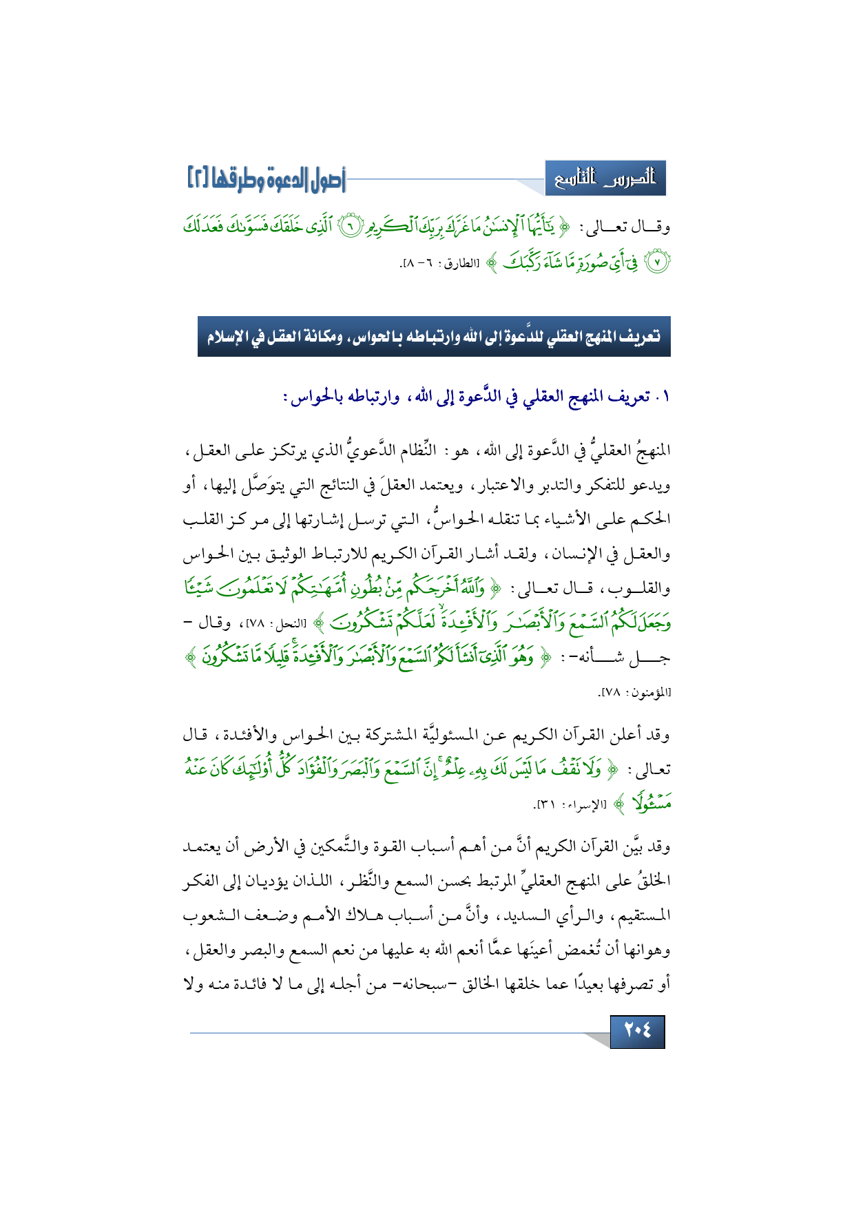 ثالثاً: تعريف المنهج العقلي للدَّعوة إلى الله وارتباطه بالحواس