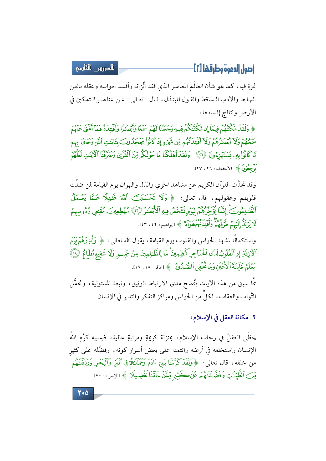 رابعاً: مكانة العقل في الإسلام