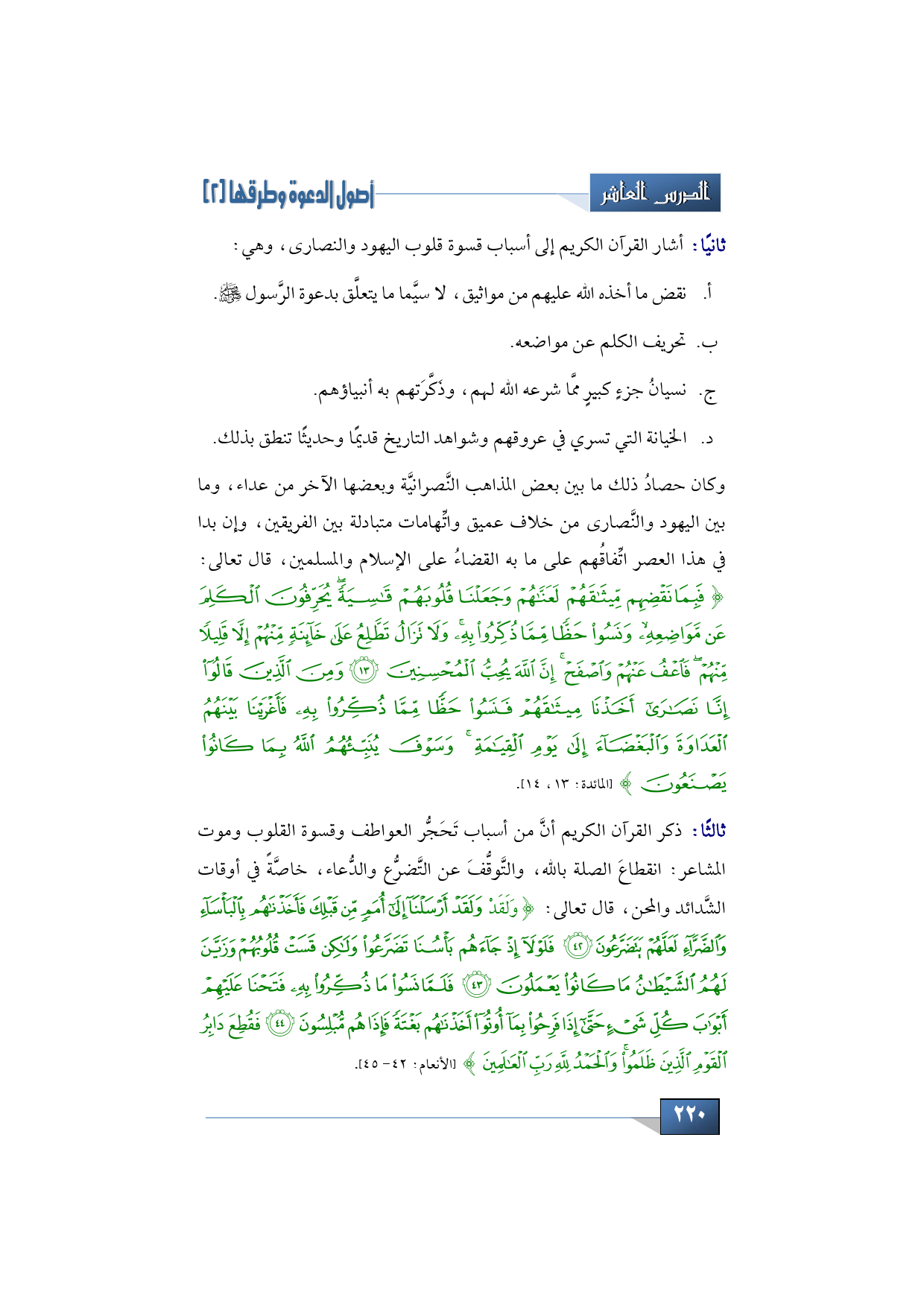 2 - أشار القرآن الكريم إلى أسباب قسوة قلوب اليهود والنصارى، وهي: