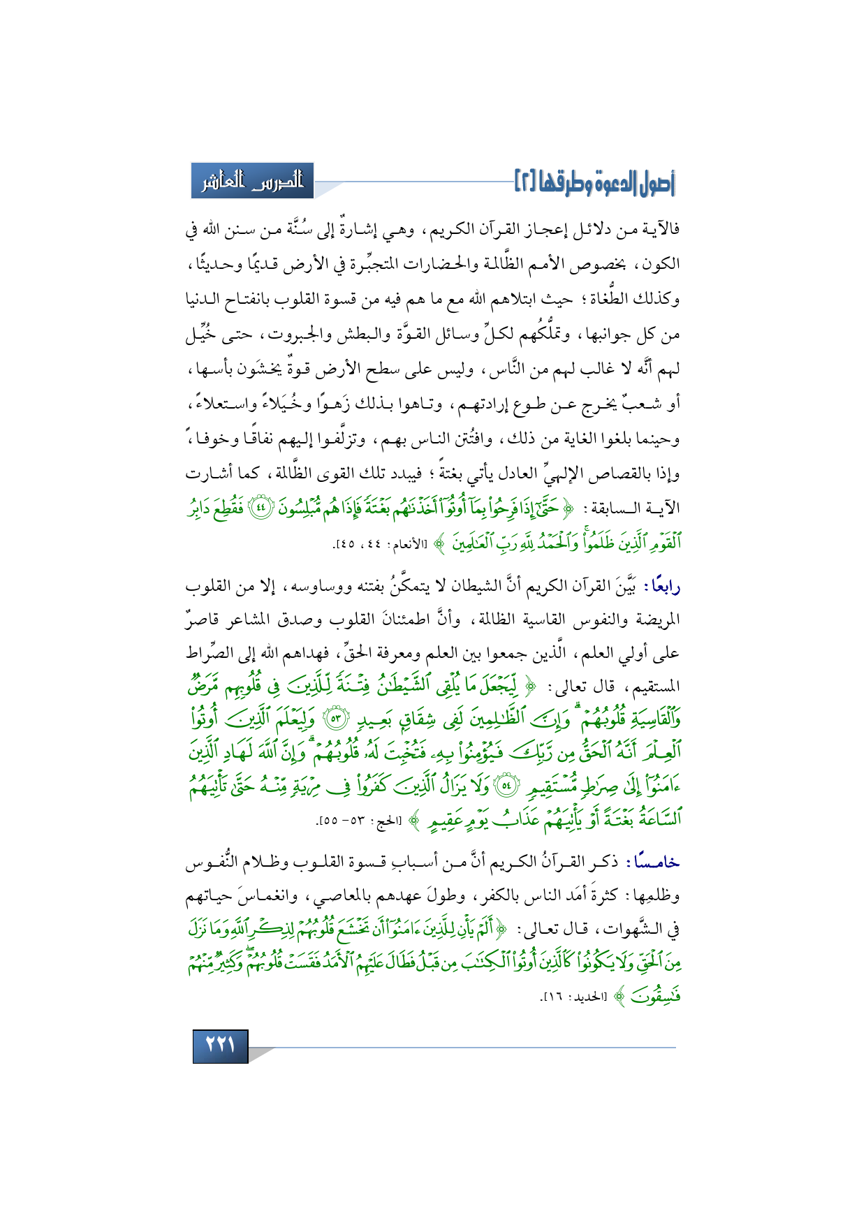 {أَلَمْ يَأْنِ لِلَّذِينَ آمَنُوا أَنْ تَخْشَعَ قُلُوبُهُمْ لِذِكْرِ اللَّهِ وَمَا نَزَلَ مِنَ الْحَقِّ وَلا يَكُونُوا كَالَّذِينَ أُوتُوا الْكِتَابَ مِنْ قَبْلُ فَطَالَ عَلَيْهِمُ الأَمَدُ فَقَسَتْ قُلُوبُهُمْ وَكَثِيرٌ مِنْهُمْ فَاسِقُونَ} [الحديد:16].