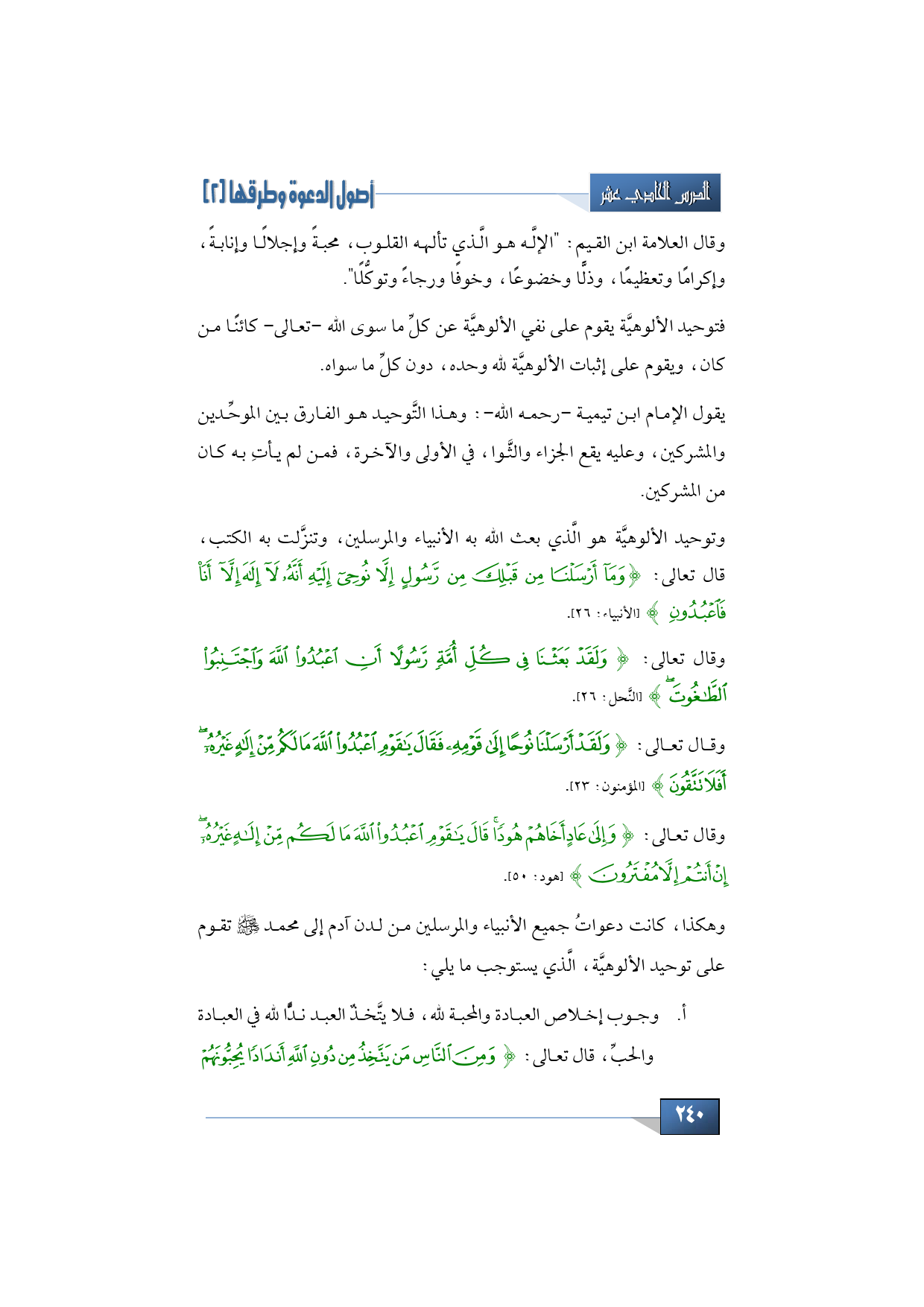 وتوحيد الألوهيَّة، هو الَّذي بعث الله به الأنبياء والمرسلين، وتنزَّلت به الكتب، قال تعالى: