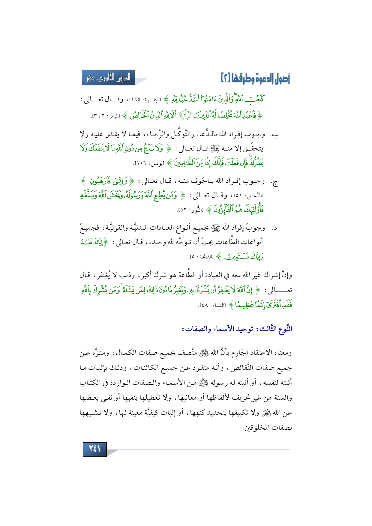 النَّوع الثَّالث: توحيد الأسماء والصفات: