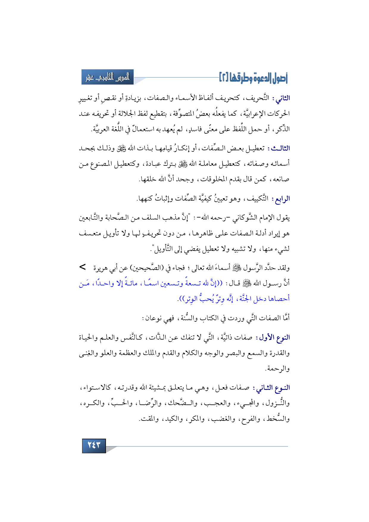 أمَّا الصفات التَّي وردت في الكتاب والسنة، فهي نوعان: