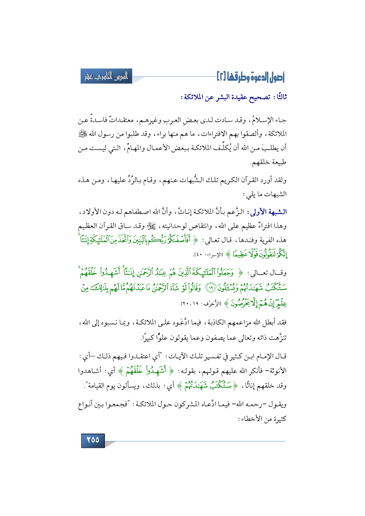 ويقول -رحمه الله- فيما ادَّعاه المشركون حول الملائكة: