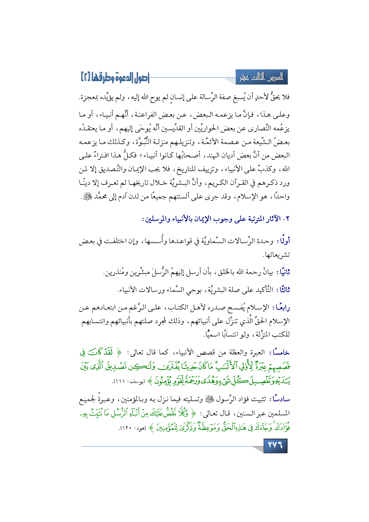 3 - التَّأكيد على صلة البشريَّة، بوحي السَّماء ورسالات الأنبياء.