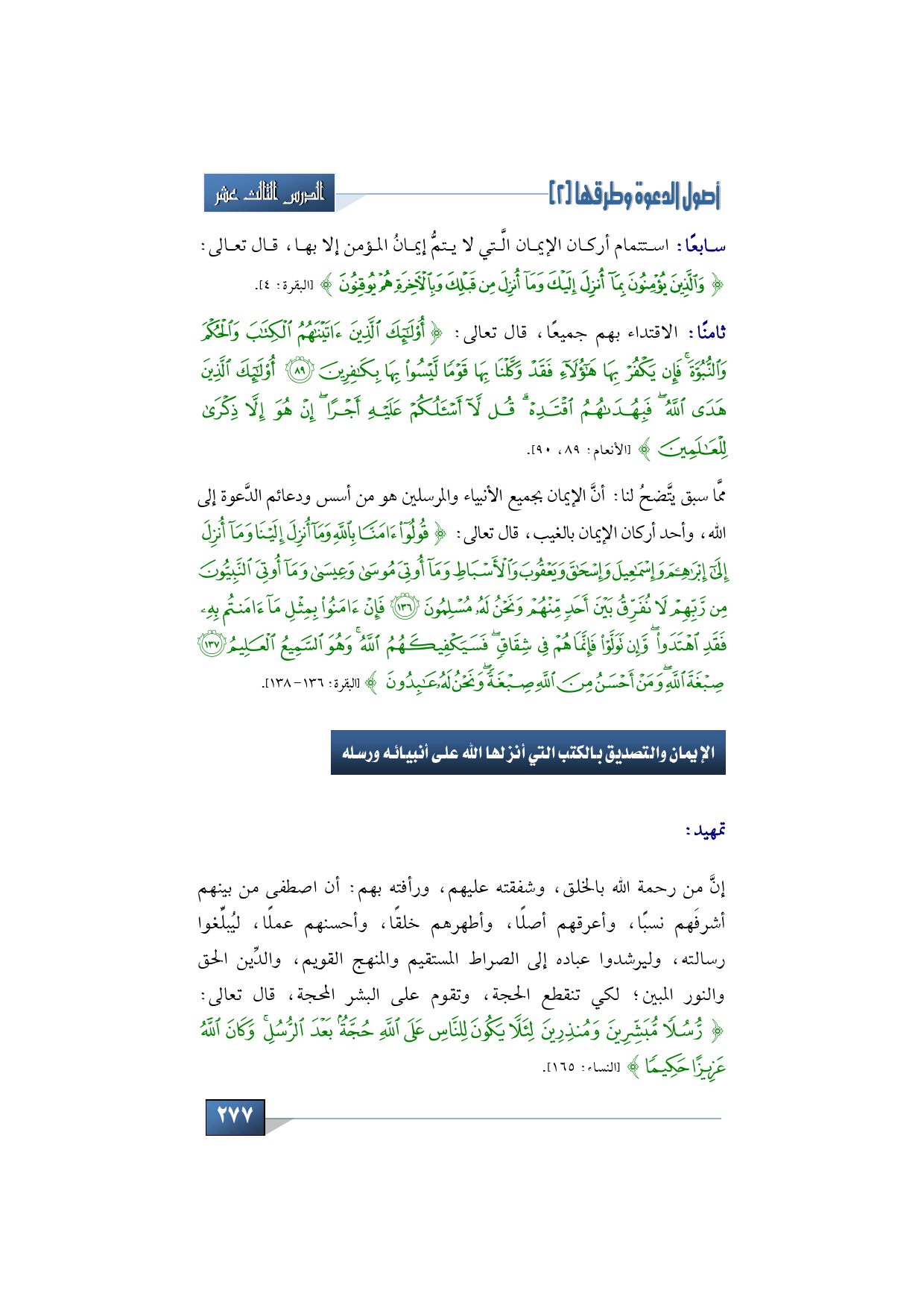 1 - من دعائم وأسس الدَّعوة إلى الله وجوب الإيمان بجميع الكتب المنزلة