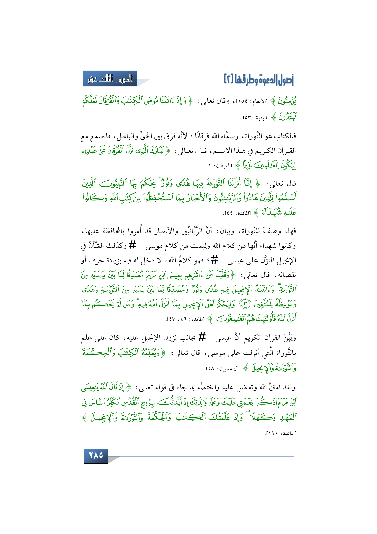 {وَقَفَّيْنَا عَلَى آثَارِهِمْ بِعِيسَى ابْنِ مَرْيَمَ مُصَدِّقاً لِمَا بَيْنَ يَدَيْهِ مِنَ التَّوْرَاةِ وَآتَيْنَاهُ الْأِنْجِيلَ فِيهِ هُدىً وَنُورٌ وَمُصَدِّقاً لِمَا بَيْنَ يَدَيْهِ مِنَ التَّوْرَاةِ وَهُدىً وَمَوْعِظَةً لِلْمُتَّقِينَ * وَلْيَحْكُمْ أَهْلُ الْأِنْجِيلِ بِمَا أَنْزَلَ اللَّهُ فِيهِ وَمَنْ لَمْ يَحْكُمْ بِمَا أَنْزَلَ اللَّهُ فَأُولَئِكَ هُمُ الْفَاسِقُونَ} [المائدة:46 - 47].