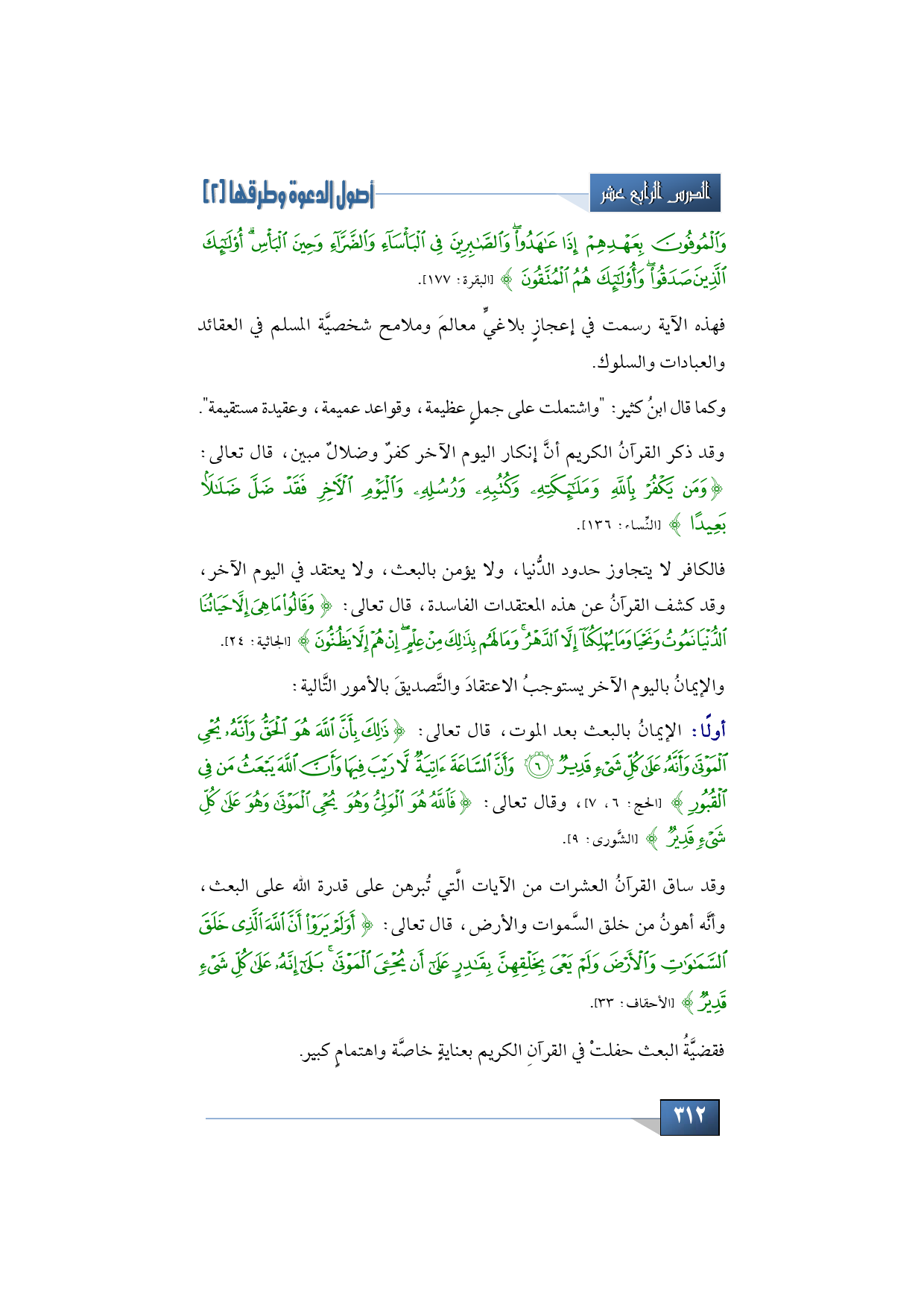 1 - الإيمانُ بالبعث بعد الموت، قال تعالى: