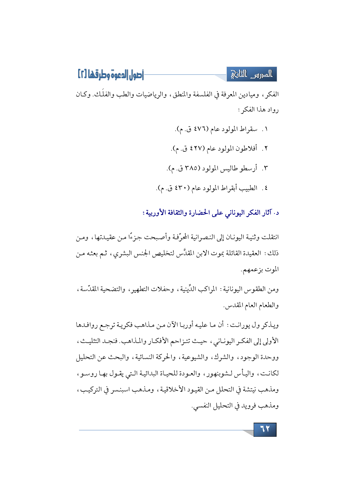 الفكر، وميادين المعرفة في الفلسفة والمنطق، والرياضيات والطب والفلَك. وكان رواد هذا الفكر: