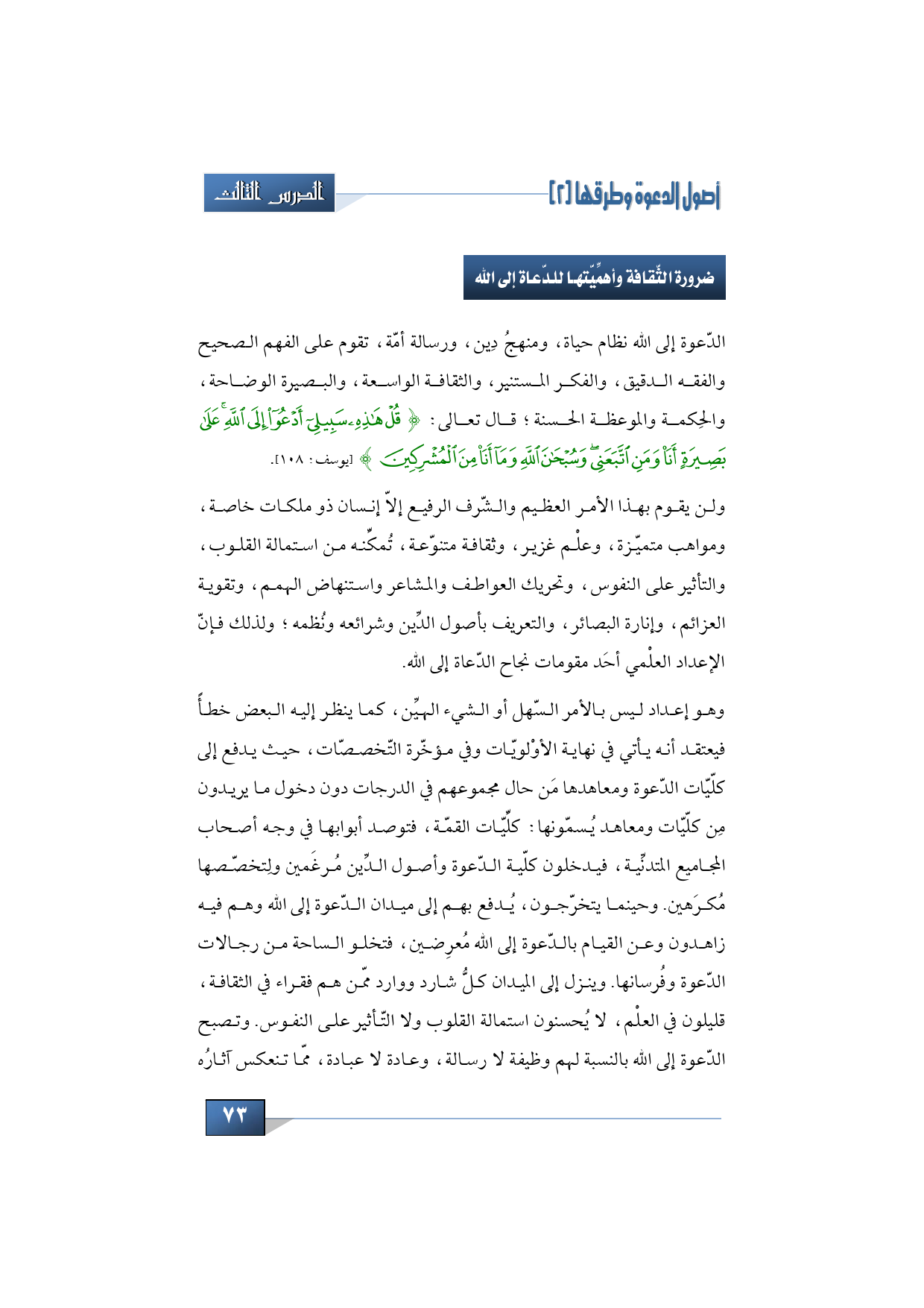 ضرورة الثّقافة وأهمِّيّتها للدّعاة إلى الله