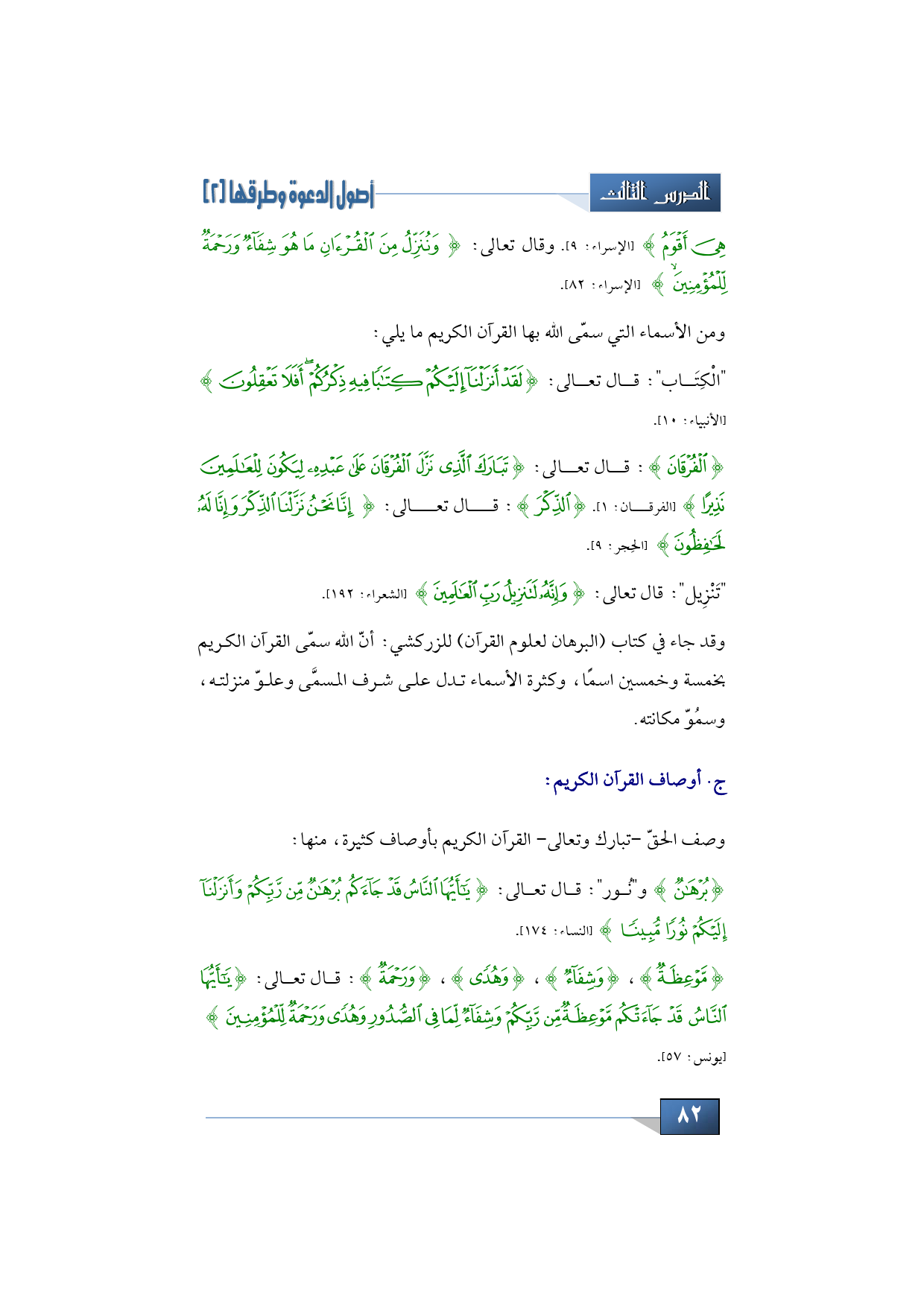 ومن الأسماء التي سمّى الله بها القرآن الكريم ما يلي: