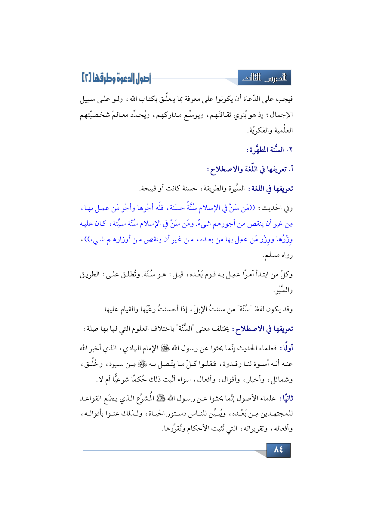 تعريف السُّنّة في اللّغة والاصطلاح