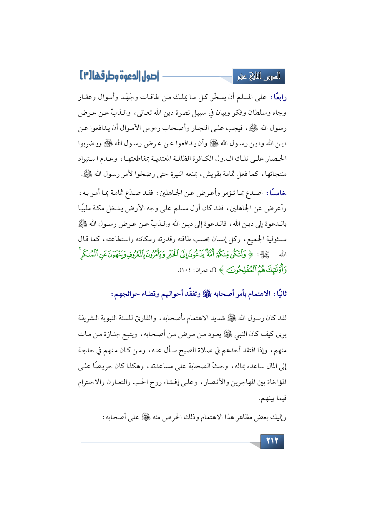 ثانيًا: الاهتمام بأمر أصحابه -صلى الله عليه وسلم- وتفقّد أحوالهم وقضاء حوائجهم: