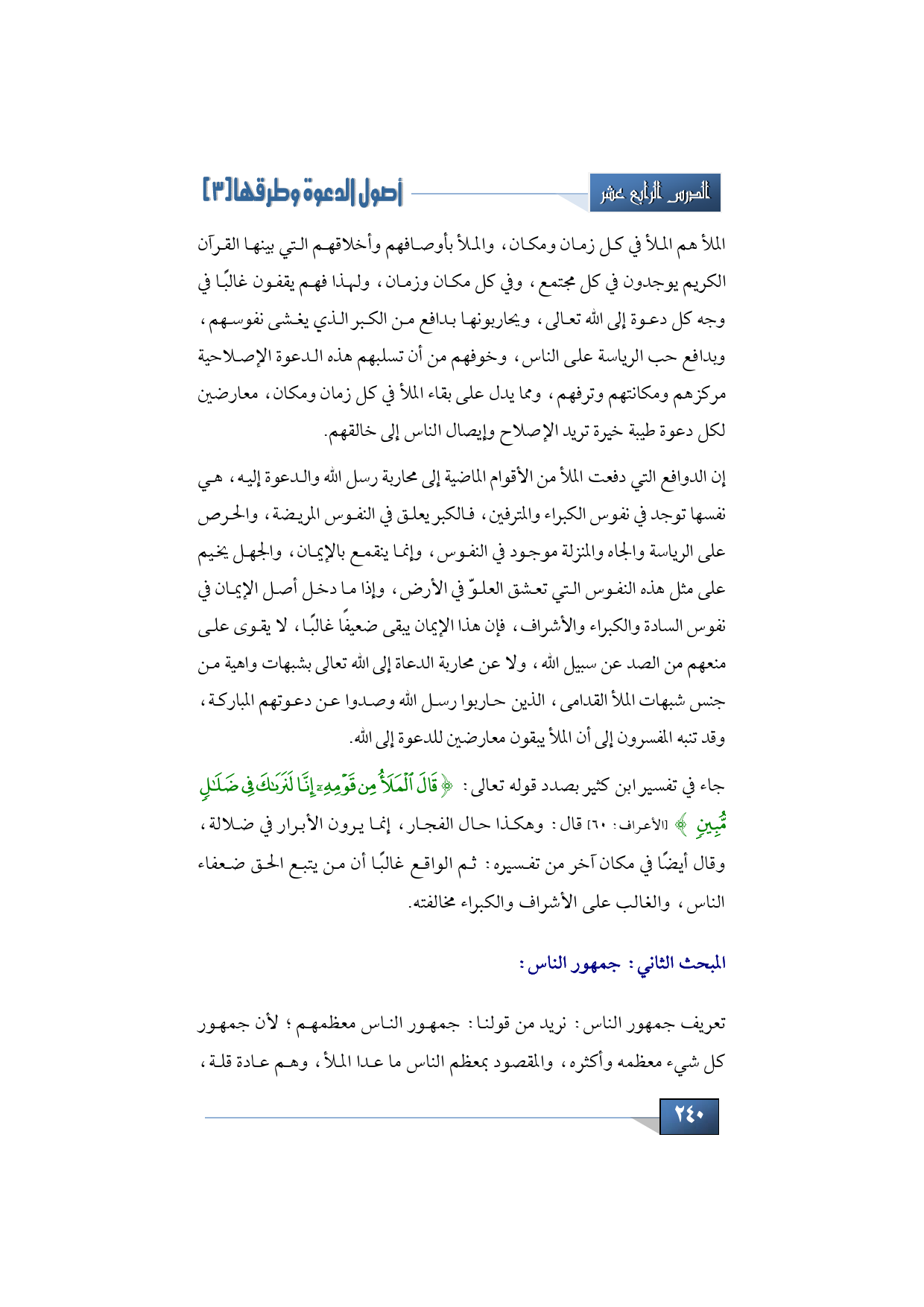 تعريف جمهور الناس: نريد من قولنا: جمهور الناس معظمهم؛ لأن جمهور كل شيء معظمه وأكثره، والمقصود بمعظم الناس ما عدا الملأ، وهم عادة قلة،
