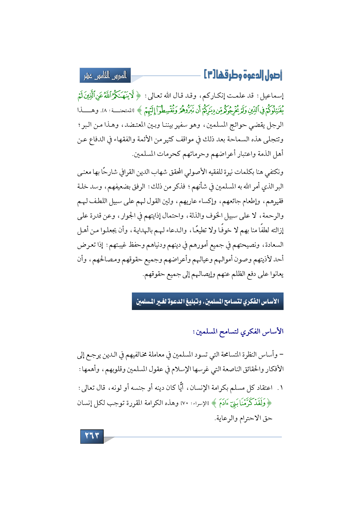 الأساس الفكري لتسامح المسلمين، وتبليغ الدعوة لغير المسلمين