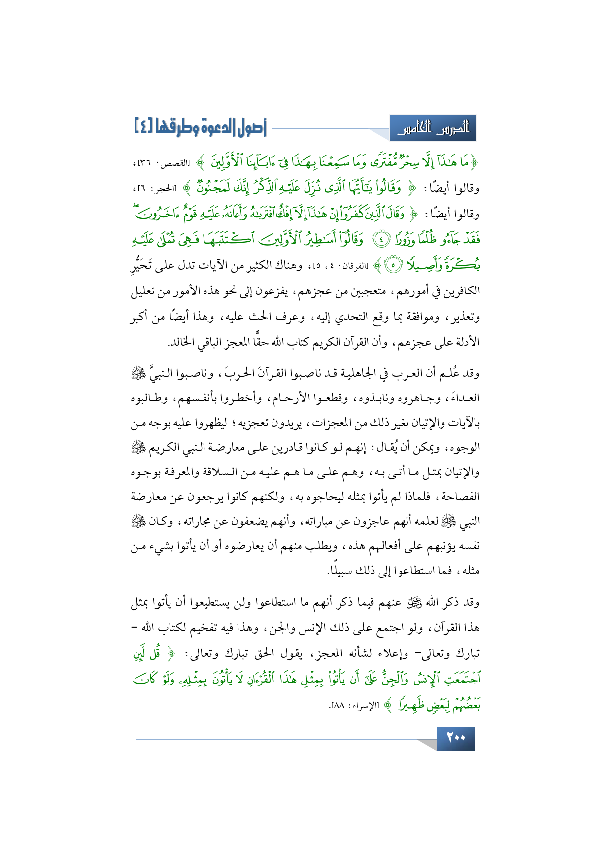 {مَا هَذَا إِلاَّ سِحْرٌ مُفْتَرًى وَمَا سَمِعْنَا بِهَذَا فِي آبَائِنَا الأَوَّلِينَ} (القصص: 36) وقالوا أيضًا: {وَقَالُوا يَا أَيُّهَا الَّذِي نُزِّلَ عَلَيْهِ الذِّكْرُ إِنَّكَ لَمَجْنُونٌ} (الحجر: 6) وقالوا أيضًا: {وَقَالَ الَّذِينَ كَفَرُوا إِنْ هَذَا إِلاَّ إِفْكٌ افْتَرَاهُ وَأَعَانَهُ عَلَيْهِ قَوْمٌ آخَرُونَ فَقَدْ جَاءُوا ظُلْمًا وَزُورًا وَقَالُوا أَسَاطِيرُ الأَوَّلِينَ اكْتَتَبَهَا فَهِيَ تُمْلَى عَلَيْهِ بُكْرَةً وَأَصِيلًا} (الفرقان: 4، 5) .... إلى آيات كثيرة نحو هذا، تدل على أنهم كانوا متحيرين في أمورهم، متعجبين من عجزهم، يفزعون إلى نحو هذه الأمور من تعليل وتعذير، وموافقة بما وقع التحدي إليه، وعرف الحث عليه، وهذا أيضًا من أكبر الأدلة على عجزهم، وأن القرآن الكريم كتاب الله حقًّا المعجز الباقي الخالد.
