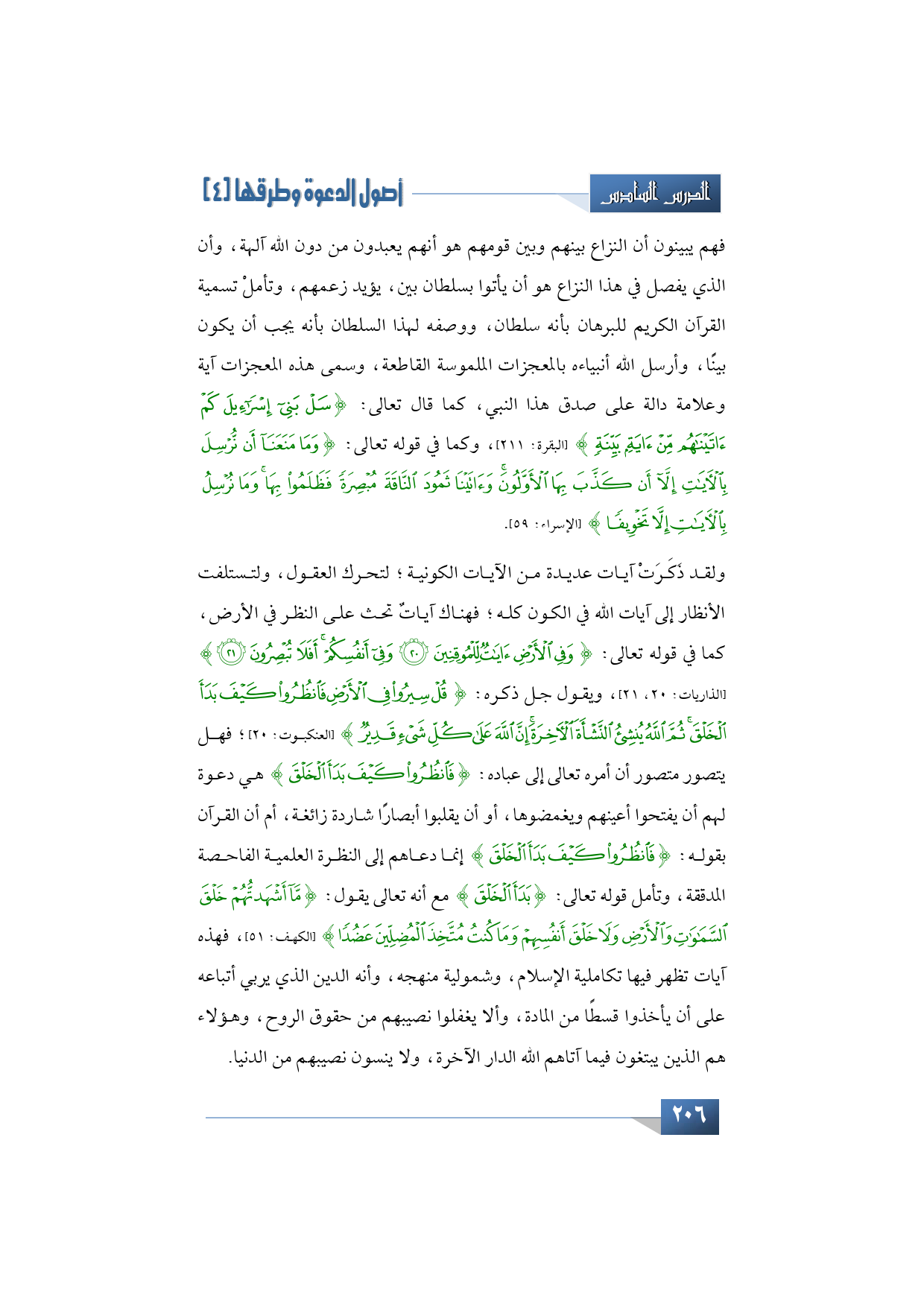 ولقد ذَكَرَتْ آيات القرآن الكريم العديد من الآيات الكونية؛ لتحرك العقول، ولتستلفت الأنظار إلى آيات الله في الكون كله، وأنا سأبسط لك القول في بعض هذه الآيات على النحو التالي؛ حيث إن هناك آيات تحث على النظر في الأرض، كما قال الله -تبارك وتعالى-: {وَفِي الأَرْضِ آيَاتٌ لِلْمُوقِنِينَ وفِي أَنفُسِكُمْ أَفَلا تُبْصِرُونَ} (الذاريات: 20، 21)، ويقول -جل ذكره-: {قُلْ سِيرُوا فِي الأَرْضِ فَانْظُرُوا كَيْفَ بَدَأَ الْخَلْقَ ثُمَّ اللَّهُ يُنشِئُ النَّشْأَةَ الآخِرَةَ إِنَّ اللَّهَ عَلَى كُلِّ شَيْءٍ قَدِيرٌ} (العنكبوت: 20)؛ فهل يتصور متصور أن أمره تعالى إلى عباده: {فَانْظُرُوا كَيْفَ بَدَأَ الْخَلْقَ} هي دعوه لهم أن يفتحوا أعينهم ويغمضوها، أو أن يقلبوا أبصارًا شاردة زائغة، أم أن القرآن بقوله: {انْظُرُوا كَيْفَ بَدَأَ الْخَلْقَ} إنما دعاهم إلى النظرة العلمية الفاحصة المدققة، وتأمل قوله تعالى: {بَدَأَ الْخَلْقَ} مع أنه تعالى يقول: {مَا أَشْهَدْتُهُمْ خَلْقَ السَّمَوَاتِ والأَرْضِ ولا خَلْقَ أَنفُسِهِمْ ومَا كُنتُ مُتَّخِذَ الْمُضِلِّينَ عَضُدًا} (الكهف: 51) فهذه آيات تظهر فيها تكاملية الإسلام، وشمولية منهجه، وأنه الدين الذي يربي أتباعه على أن يأخذوا قسطًا من المادة، وألا يغفلوا نصيبهم من حقوق الروح، وهؤلاء هم الذين يبتغون فيما آتاهم الله الدار الآخرة، ولا ينسون نصيبهم من الدنيا.