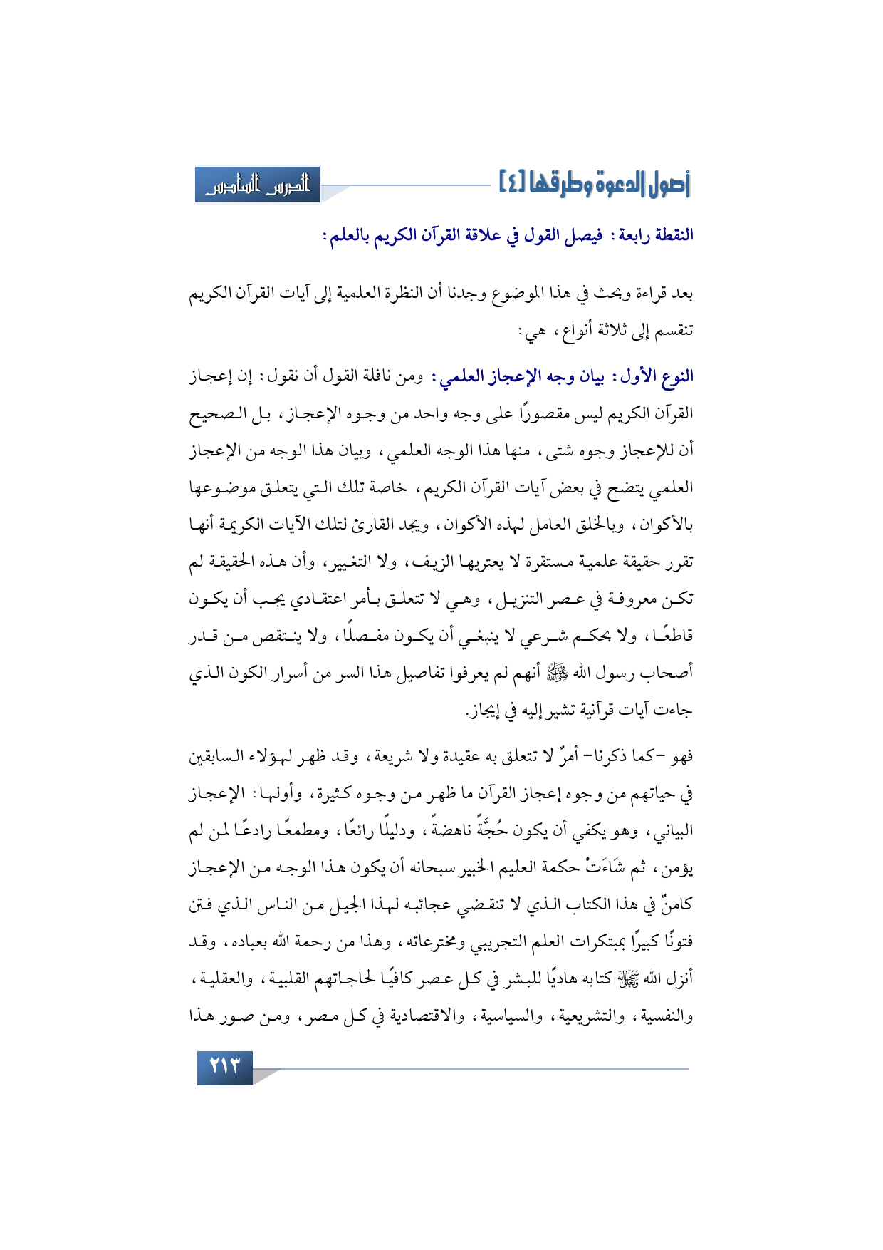 النقطة رابعة: فيصل القول في علاقة القرآن الكريم بالعلم:
