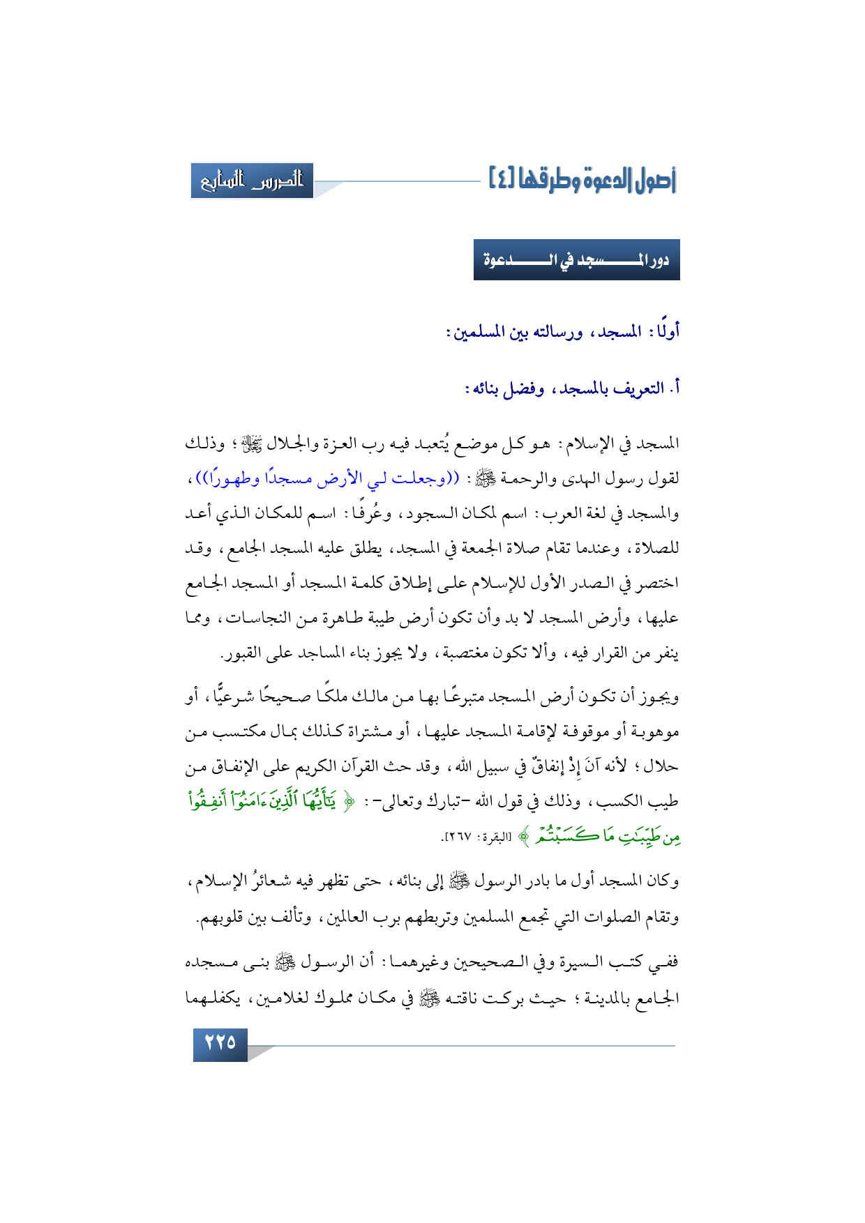 1 - المسجد؛ مكانته في الإسلام، ودوره في تبليغ الدعوة