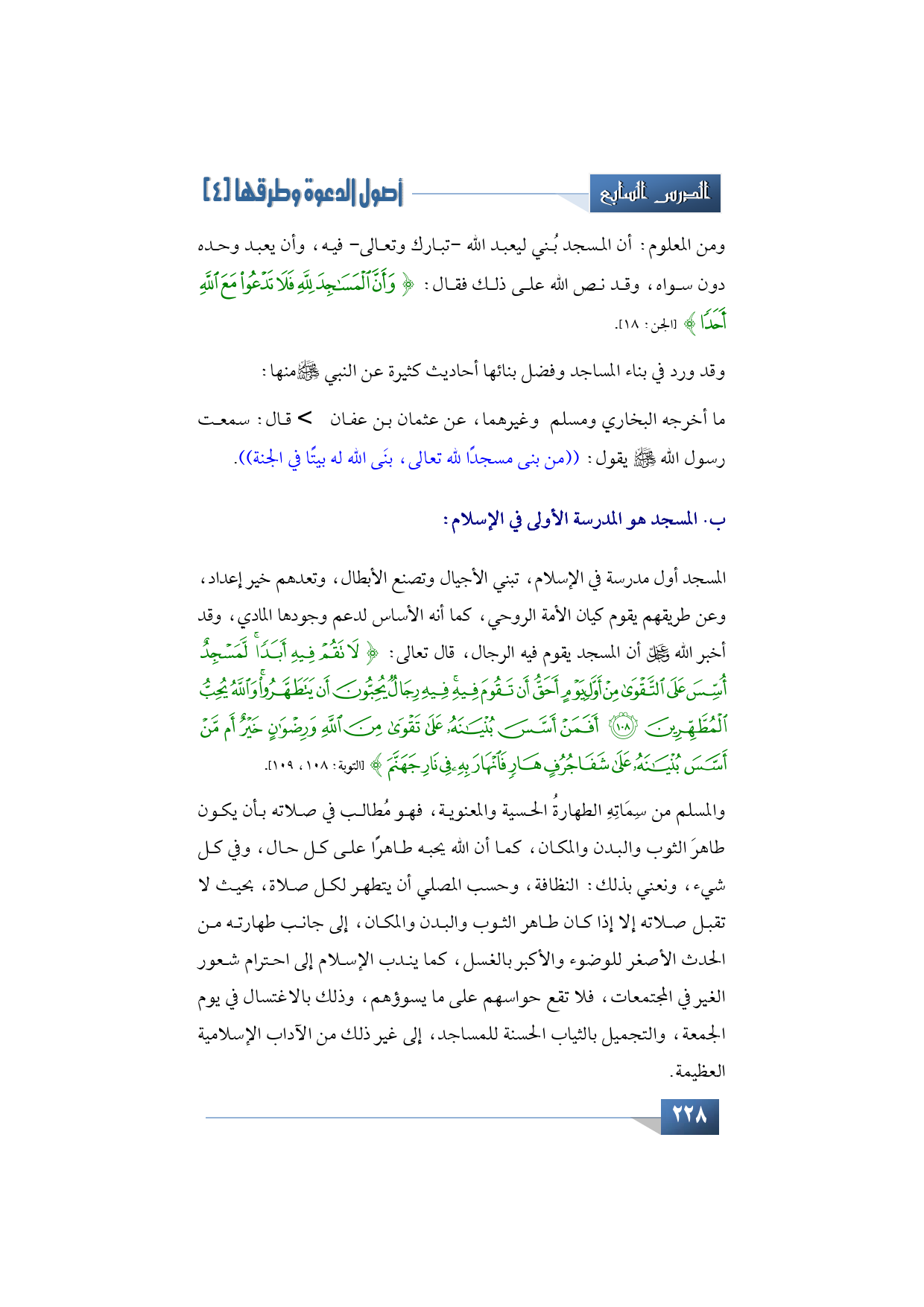 ب- بعنوان: المسجد المدرسة الأولى في الإسلام: