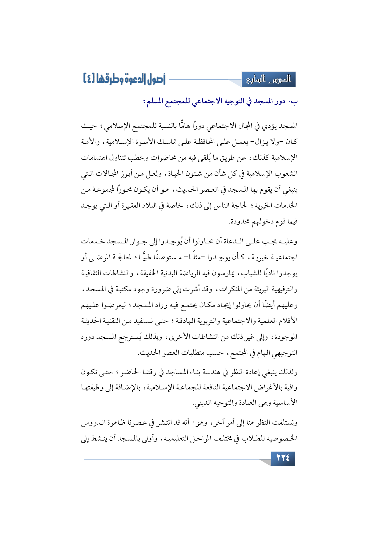 وبذلك يَسترجع المسجد دوره التوجيهي الهام في المجتمع، حسب متطلبات العصر الحديث.