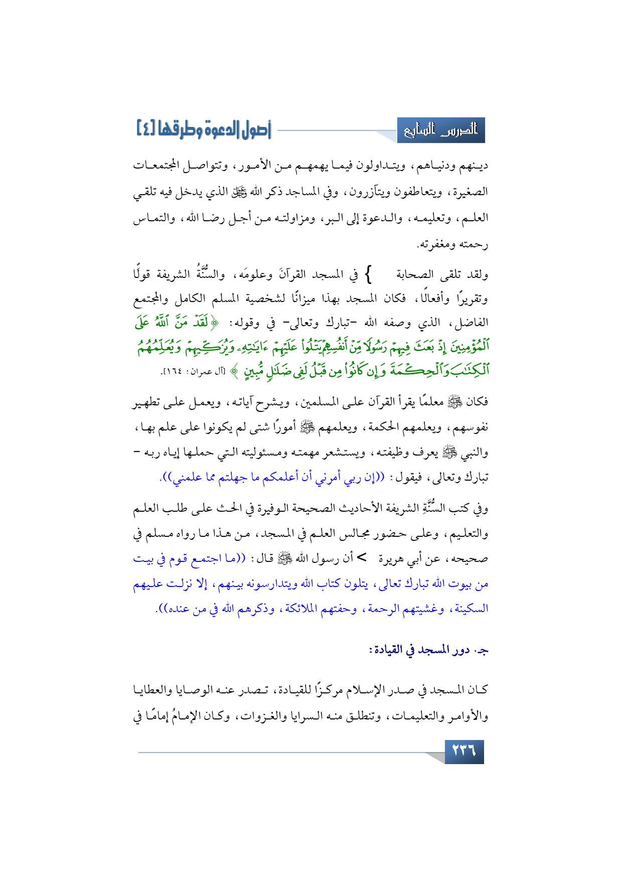 جـ- بعنوان: دور المسجد في القيادة: