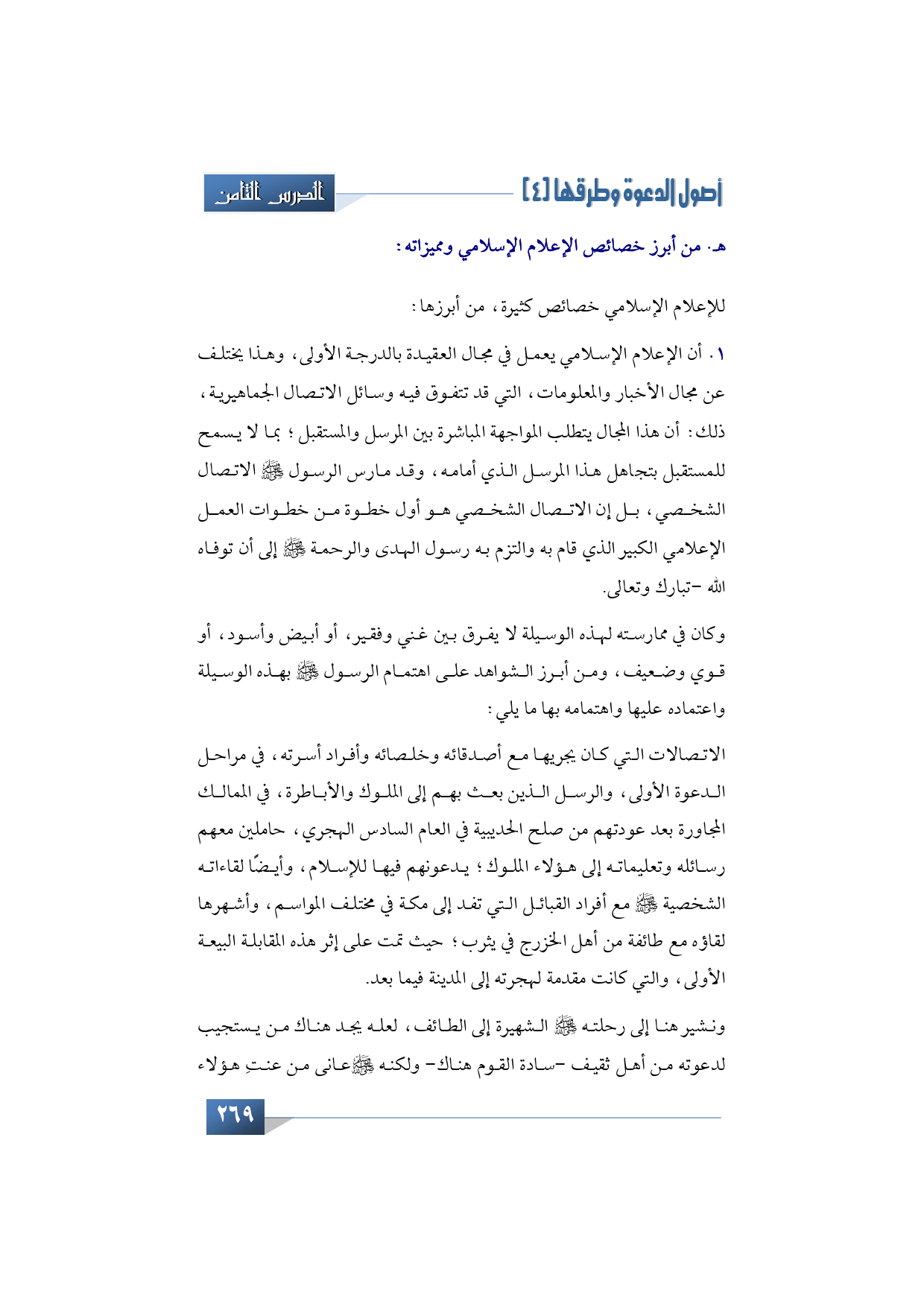 هـ- من أبرز خصائص الإعلام الإسلامي ومميزاته: