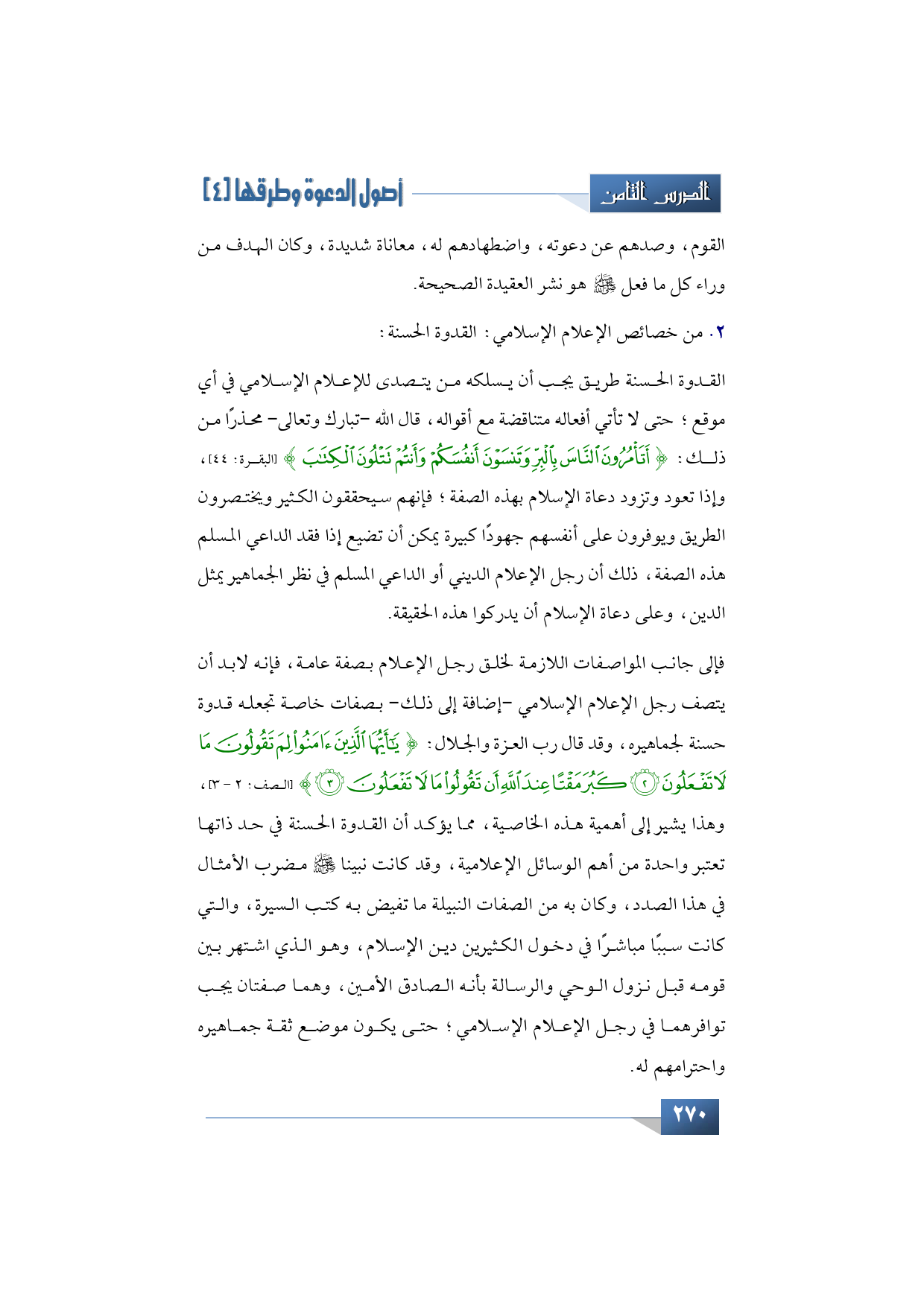 الخاصية الثانية من خصائص الإعلام الإسلامي: القدوة الحسنة: