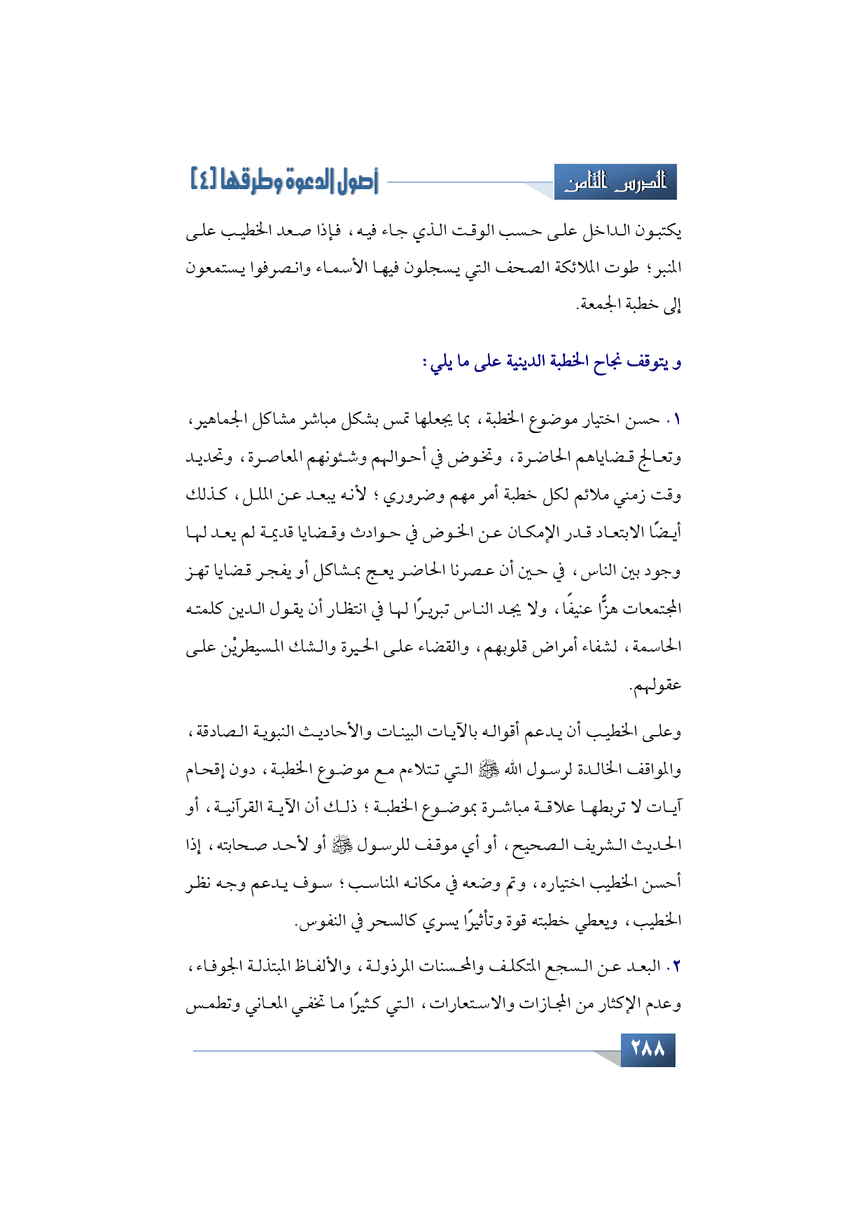 ويتوقف نجاح الخطبة الدينية على ما يلي: