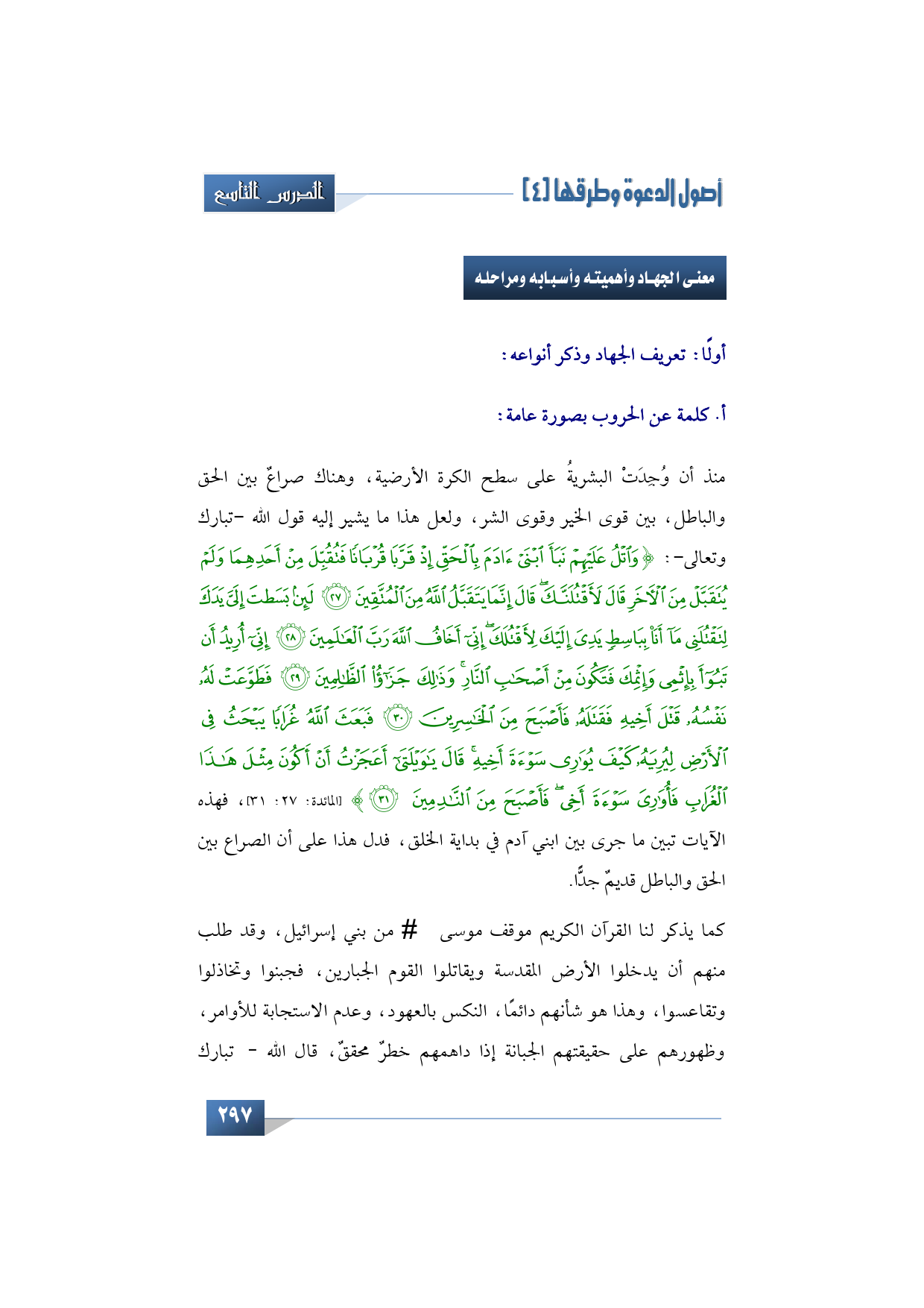 قبل أن أفصّل القول في موضوع الجهاد في الإسلام أود أن أتكلم عن الحرب بصورة عامة، فأقول -وبالله التوفيق-: