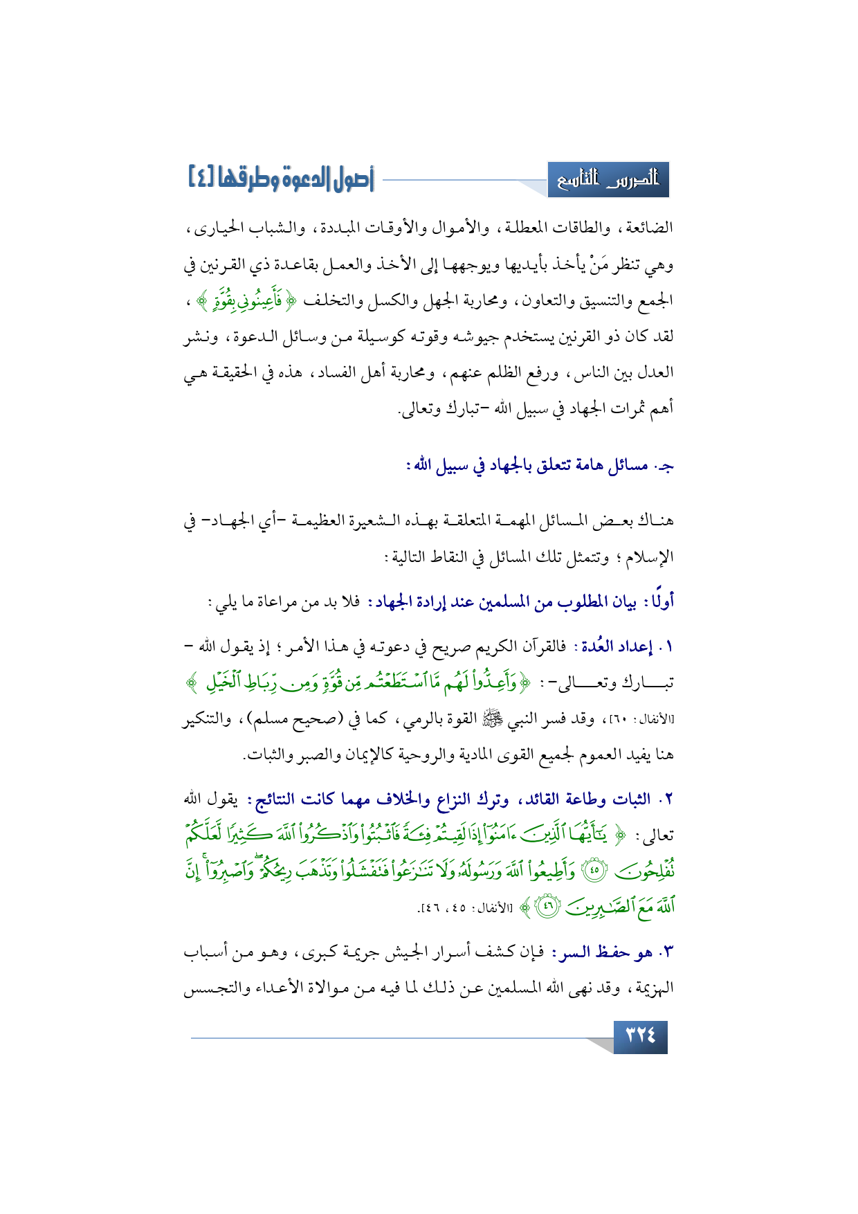 مسائل هامة تتعلق بالجهاد في سبيل الله