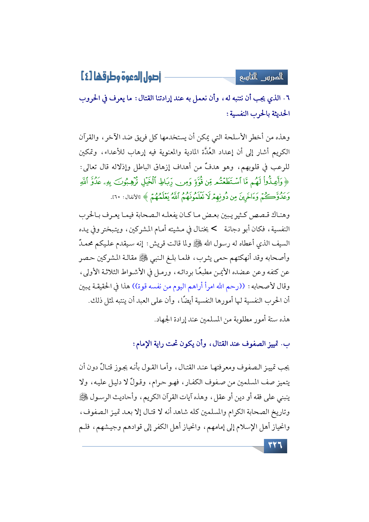 الأمر السادس الذي يجب أن نتنبه له، وأن نعمل به عند إرادتنا القتال: ما يعرف في الحروب الحديثة بالحرب النفسية: