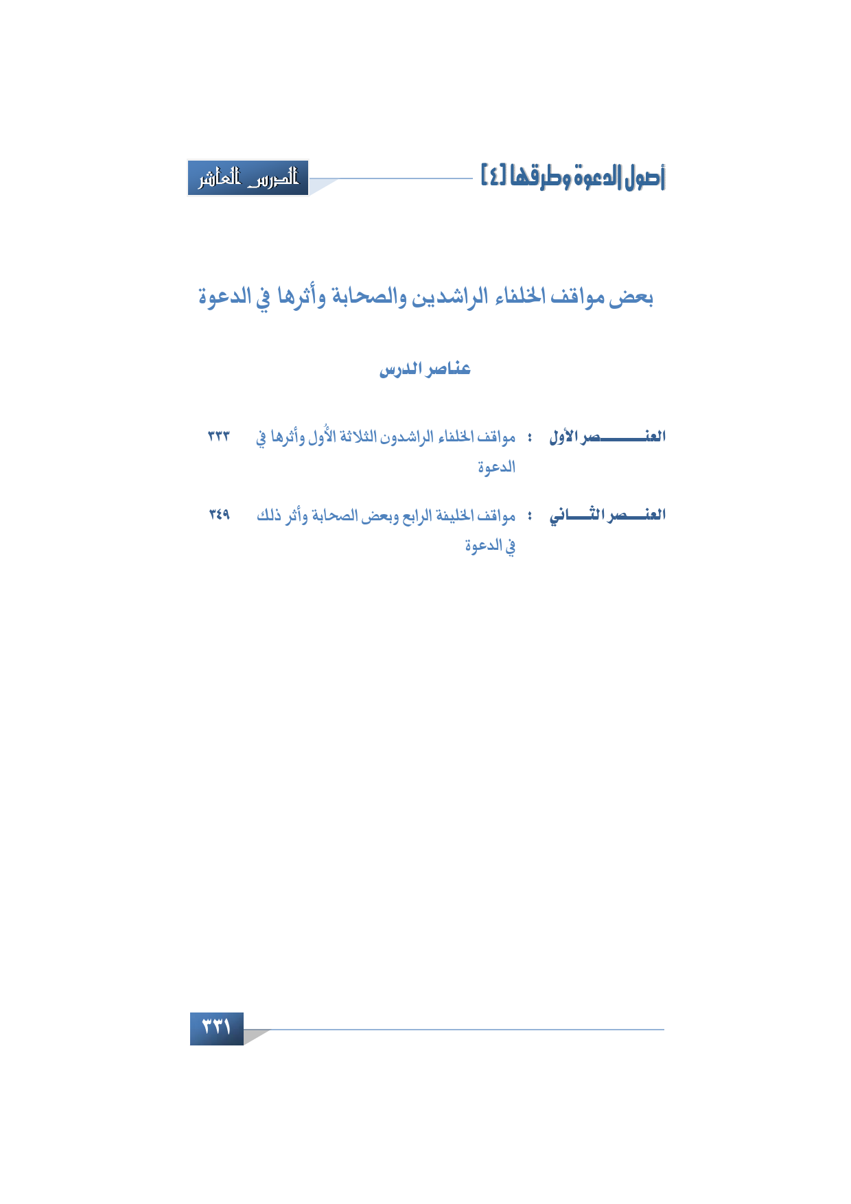 الدرس: 10 بعض مواقف الخلفاء الراشدين والصحابة وأثرها في الدعوة.