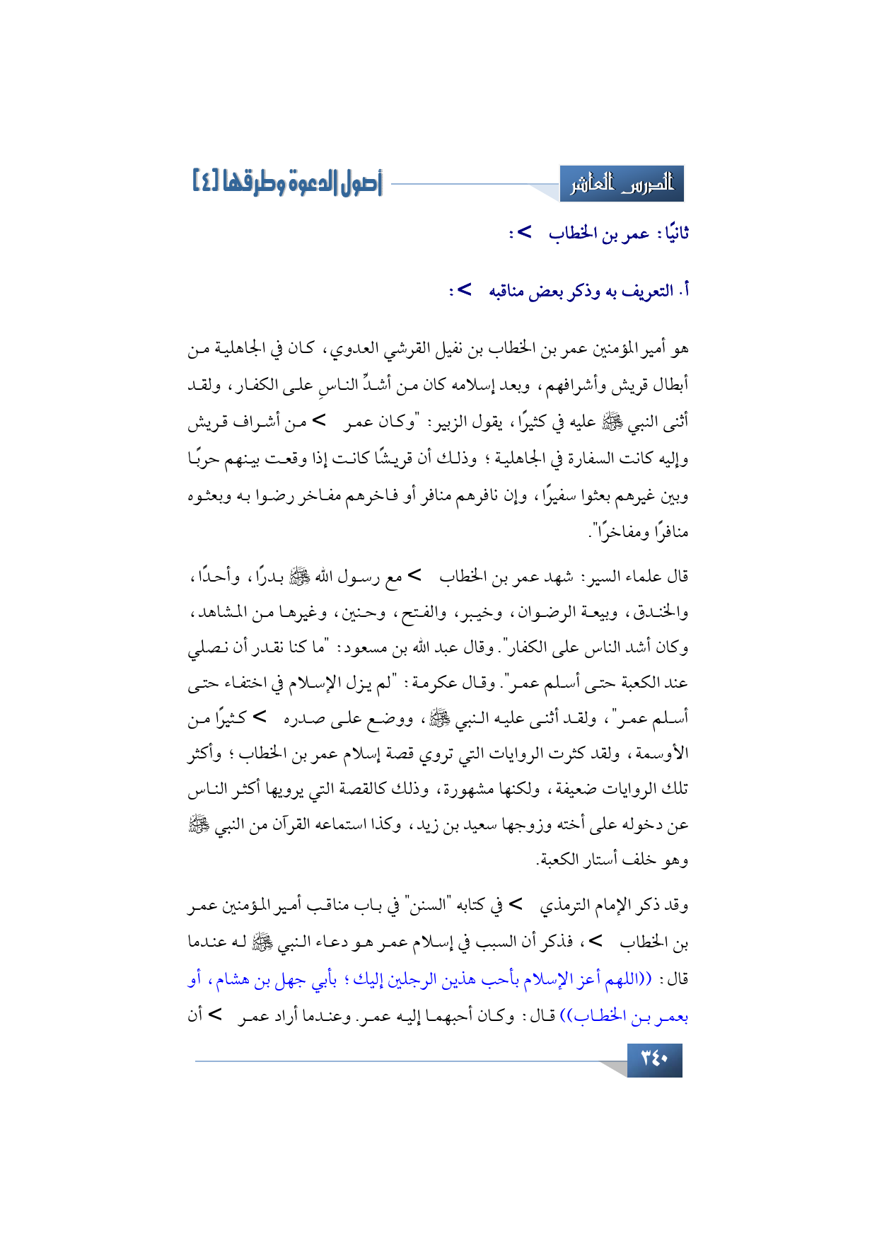 عمر بن الخطاب -رضي الله تعالى عنه- ويشتمل على النقاط التالية: