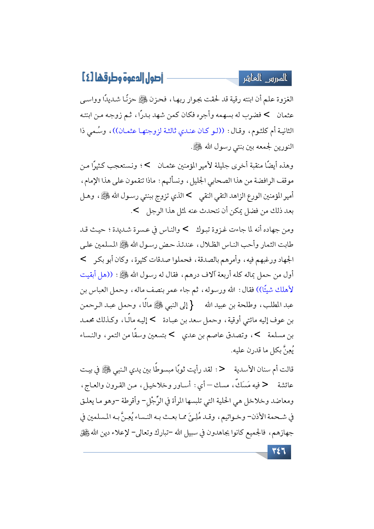 وهذه أيضًا منقبة أخرى جليلة لأمير المؤمنين عثمان -رضي الله تعالى عنه- ولذلك أبادر وأسارع وأوجه خطابي إلى الرافضة فأقول: ماذا تنقمون على هذا الإمام، أمير المؤمنين الورع الزاهد التقي النقي -رضي الله تعالى عنه- الذي تزوج ببنتي رسول الله -صلى الله عليه وآله وسلم- وهل بعد ذلك من فضل يمكن أن نتحدث عنه لمثل هذا الرجل -رضي الله تعالى عنه.