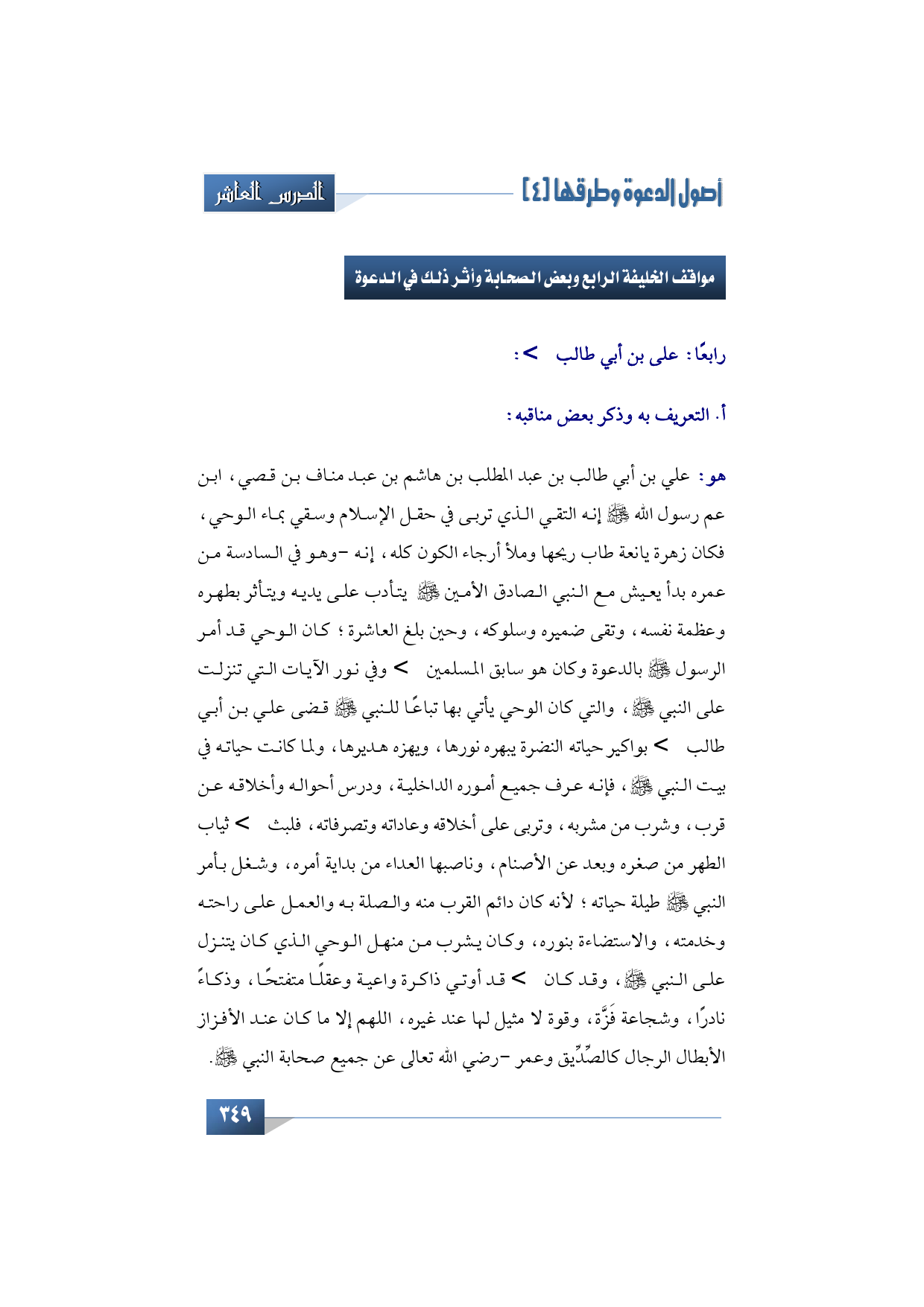أرحب بكم -أيها الإخوة الكرام- في المحاضرة العشرين، وهي بعنوان: دراسة عن علي بن أبي طالب -رضي الله تعالى عنه- وبعض الصحابة -رضي الله عنهم- وأثرهم في الدعوة إلى الله -تبارك وتعالى.