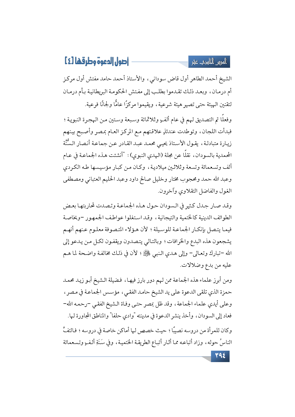 أود بعد ذلك هنا أن أذكر وأشير، وأن أتحدث عن نشأة جماعة أنصار السنة في السودان، أن أذكر أبرز علماء هذه الجماعة، وقد أشرت سابقًا إلى أسماء بعض العلماء الذين ساهموا في تأسيسها، وأود أن أذكر بعض العلماء الآخرين ممن لهم دور بارز في هذه الجماعة، ومنهم فضيلة الشيخ أبو زيد محمد حمزة التي تلقى الدعوة على يد الشيخ حامد الفقي، مؤسس الجماعة في مصر، وعلى أيدي علماء الجماعة، وقد ظل بمصر حتى وفاة الشيخ الفقي -رحمه الله- فعاد إلى السودان، وأخذ ينشر الدعوة في مدينته "وادي حلفا" والمناطق المجاورة لها.
