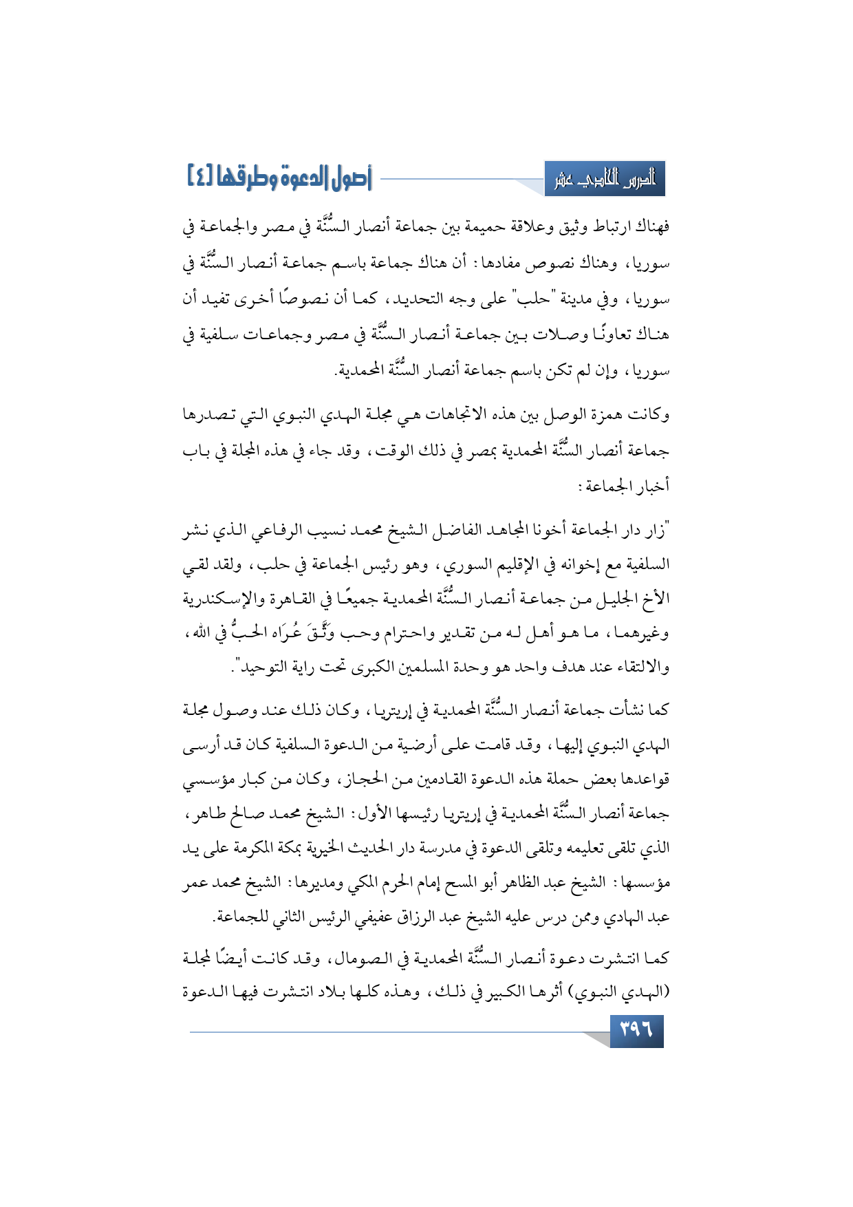 وكانت همزة الوصل بين هذه الاتجاهات هي مجلة الهدي النبوي التي تصدرها جماعة أنصار السنة المحمدية بمصر في ذلك الوقت، وقد جاء في مجلة (الهدي النبوي) في باب أخبار الجماعة:
