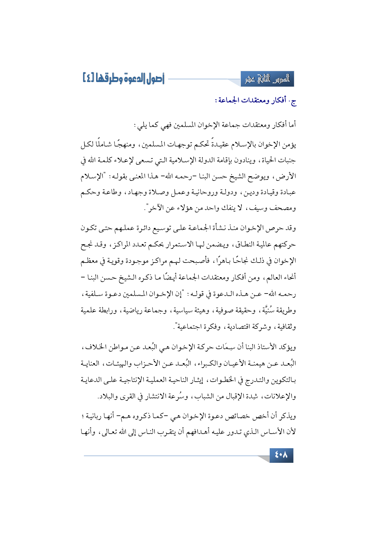ج- بعنوان أفكار ومعتقدات الجماعة: سأسرد أفكار ومعتقدات الجماعة من خلال ما كتبوه هم، ثم أعقب على ذلك بعنصر لا بد منه، سيأتي إن شاء الله -تبارك وتعالى.