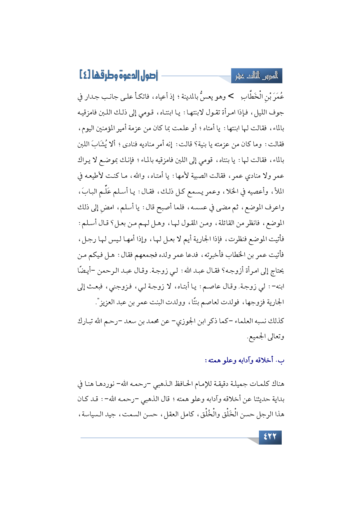 ب- بعنوان "أخلاقه وآدابه وعلو همته -رحمه الله -تبارك وتعالى":