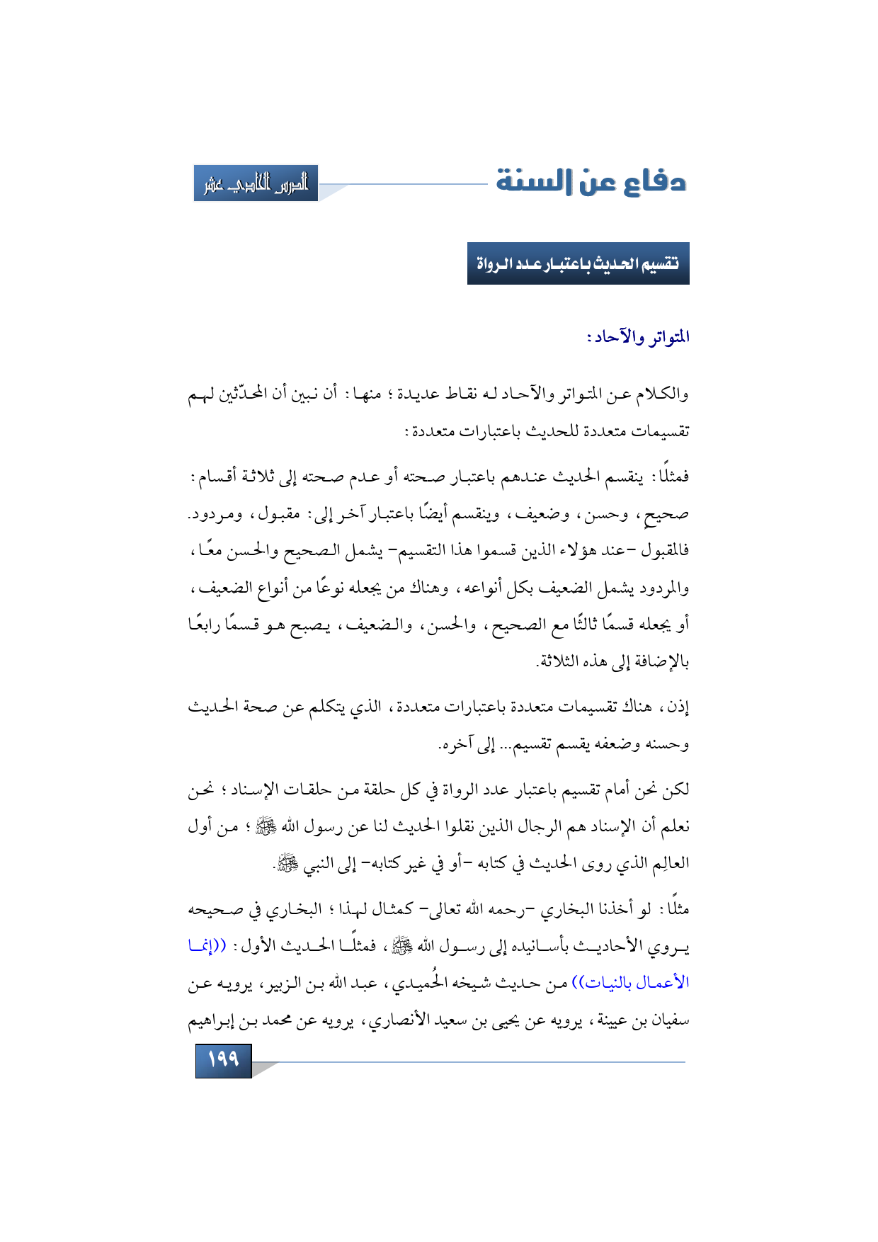 تقسيم الحديث باعتبار عدد الرواة