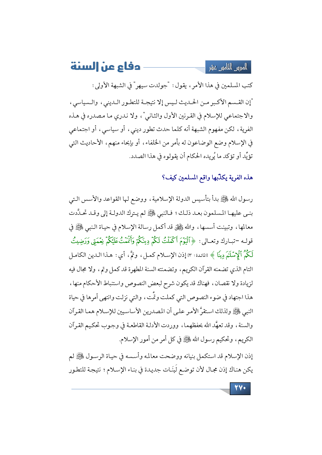 كتب المسلمين في هذا الأمر، يقول: "جولدت سيهر" في الشبهة الأولى: