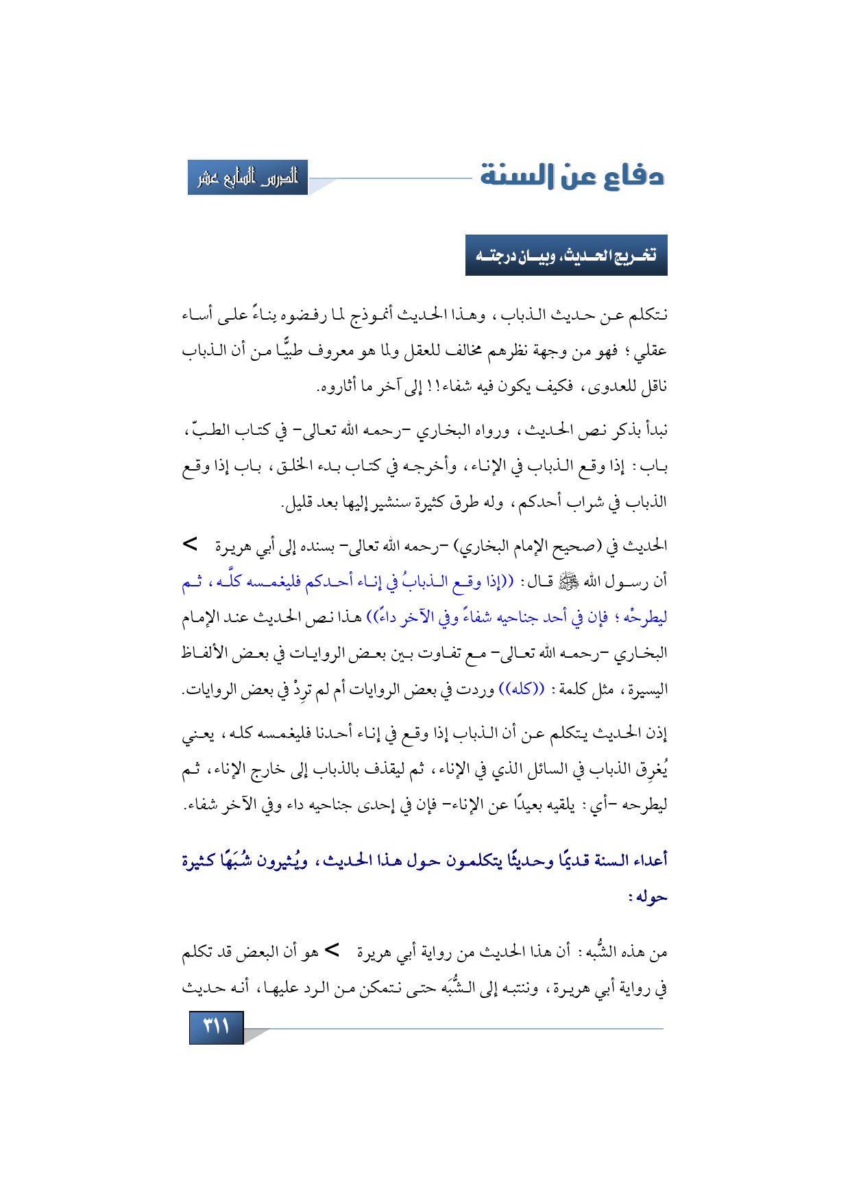(حديث الذباب، ودفع ما أثير حوله من شبهات)