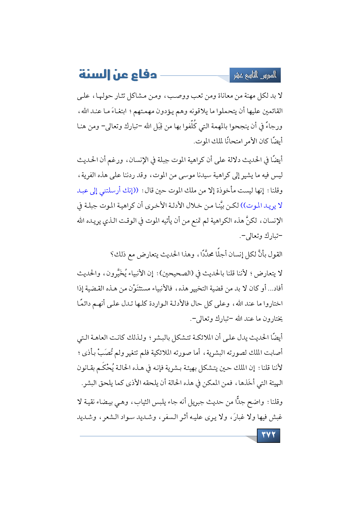 لا بد لكل مهنة من معاناة ومن تعب ووصب، ومن مشاكل تثار حولها، على القائمين عليها أن يتحملوا ما يلاقونه وهم يؤدون مهمتهم؛ ابتغاءَ ما عند الله، ورجاءً في أن ينجحوا بالمهمة التي كُلّفوا بها من قِبَل الله -تبارك وتعالى- ومن هنا أيضًا كان الأمر امتحانًا لملك الموت.
