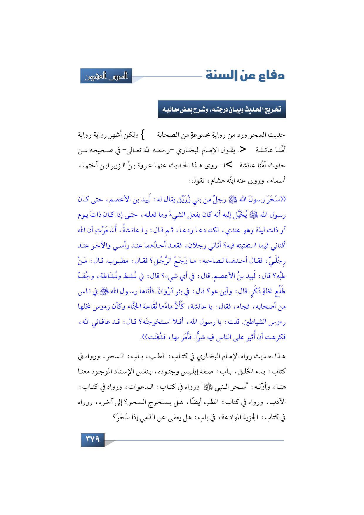 (حديث السحر، ودفع ما أثير حوله من شبهات)