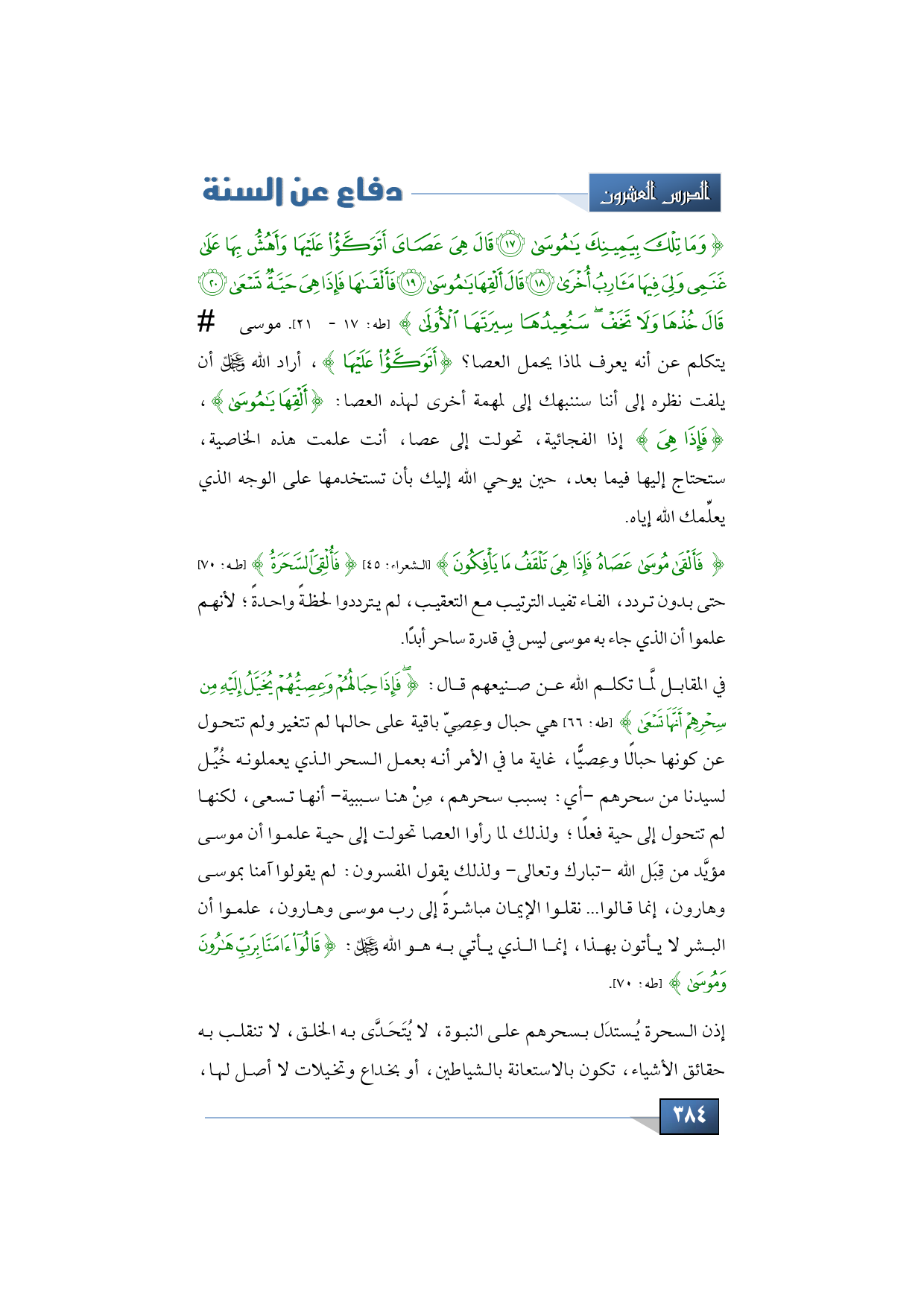 {وَمَا تِلْكَ بِيَمِينِكَ يَا مُوسَى * قَالَ هِيَ عَصَايَ أَتَوَكَّأُ عَلَيْهَا وَأَهُشُّ بِهَا عَلَى غَنَمِي وَلِيَ فِيهَا مَآرِبُ أُخْرَى * قَالَ أَلْقِهَا يَا مُوسَى * فَأَلْقَاهَا فَإِذَا هِيَ حَيَّةٌ تَسْعَى * قَالَ خُذْهَا وَلَا تَخَفْ سَنُعِيدُهَا سِيرَتَهَا الْأُولَى} (طه: 17 - 21). موسى -عليه السلام- يتكلم عن أنه يعرف لماذا يحمل العصا؟ {أَتَوَكَّأُ عَلَيْهَا}، أراد الله -عز وجل- أن يلفت نظره إلى أننا سننبهك إلى لمهمة أخرى لهذه العصا: {أَلْقِهَا يَا مُوسَى}، {فَإِذَا هِيَ} إذا الفجائية، تحولت إلى عصا، أنت علمت هذه الخاصية، ستحتاج إليها فيما بعد، حين يوحي الله إليك بأن تستخدمها على الوجه الذي يعلِّمك الله إياه.