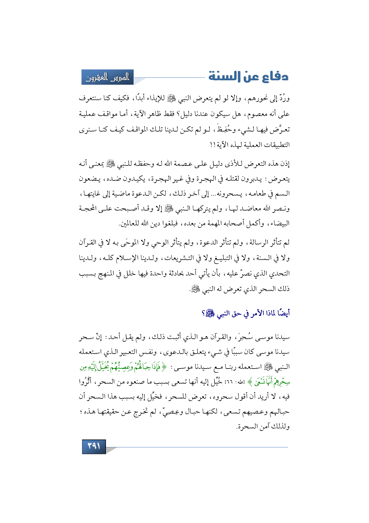 سيدنا موسى سُحِرَ، والقرآن هو الذي أثبت ذلك، ولم يقل أحد: إنّ سحر سيدنا موسى كان سببًا في شيء يتعلق بالدعوى، ونفس التعبير الذي استعمله النبي -صلى الله عليه وسلم- استعمله ربنا مع سيدنا موسى: {فَإِذَا حِبَالُهُمْ وَعِصِيُّهُمْ يُخَيَّلُ إِلَيْهِ مِنْ سِحْرِهِمْ أَنَّهَا تَسْعَى} (طه: 66) خُيِّل إليه أنها تسعى بسبب ما صنعوه من السحر، أثَّرُوا فيه، لا أريد أن أقول سحروه، تعرض للسحر، فخيِّل إليه بسبب هذا السحر أن حبالهم وعصيهم تسعى، لكنها حبال وعِصِيّ، لم تخرج عن حقيقتها هذه؛ ولذلك آمن السحرة.