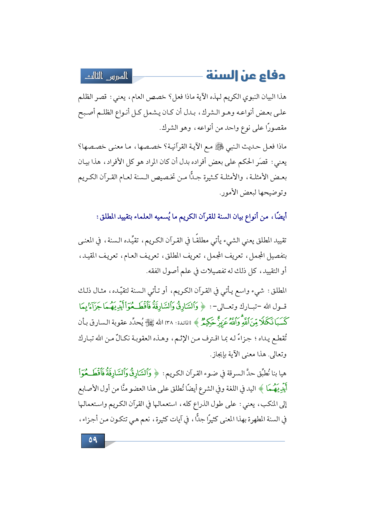 أيضًا، من أنواع بيان السنة للقرآن الكريم ما يُسميه العلماء بتقييد المطلق:
