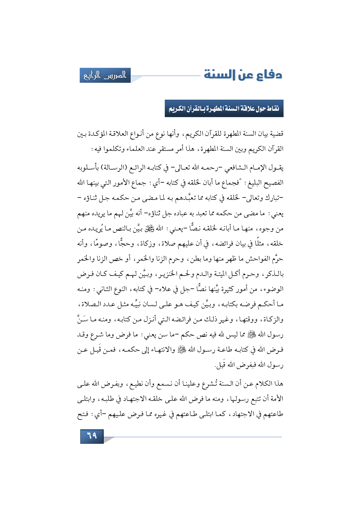نقاط حول علاقة السنة المطهرة بالقرآن الكريم