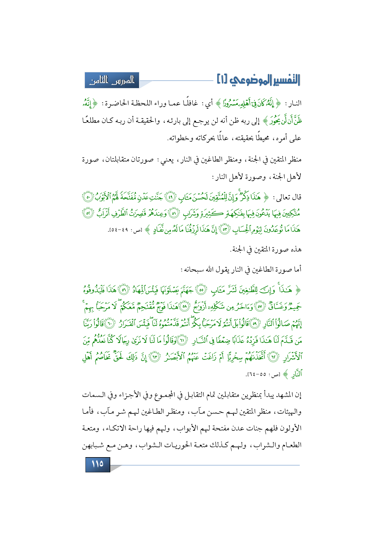 منظر المتقين في الجنة، ومنظر الطاغين في النار، يعني: صورتان متقابلتان، صورة لأهل الجنة، وصورة لأهل النار:
